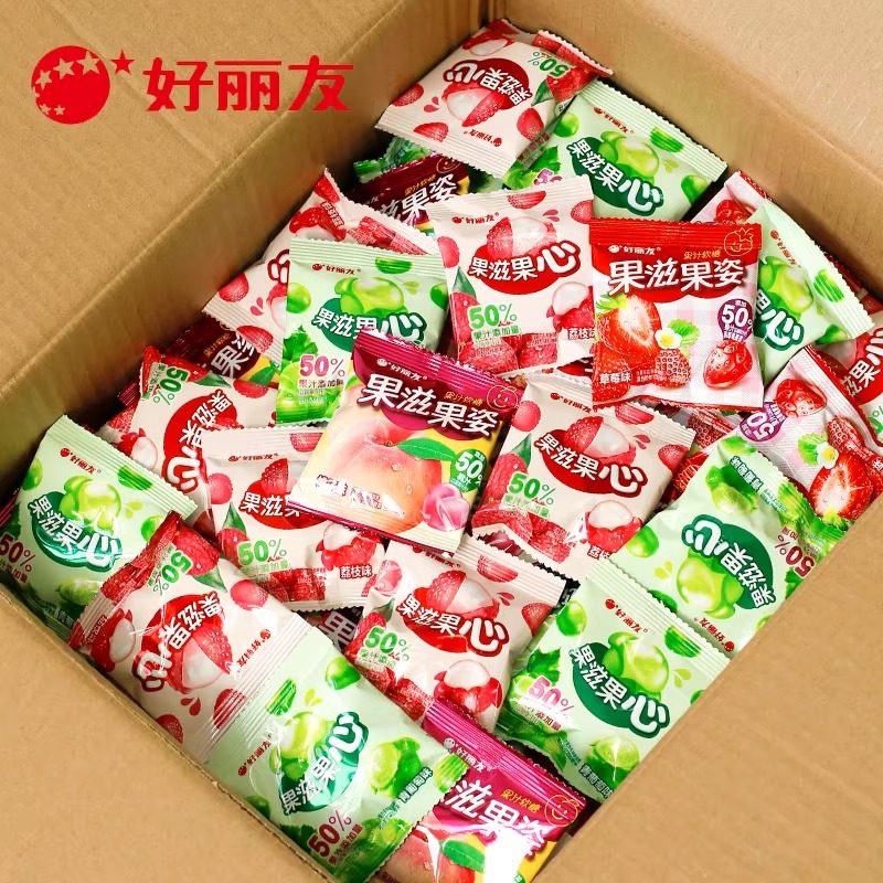 好丽友果滋果心百香果青葡萄紫葡萄荔枝味可剥皮果味软糖休闲零食
