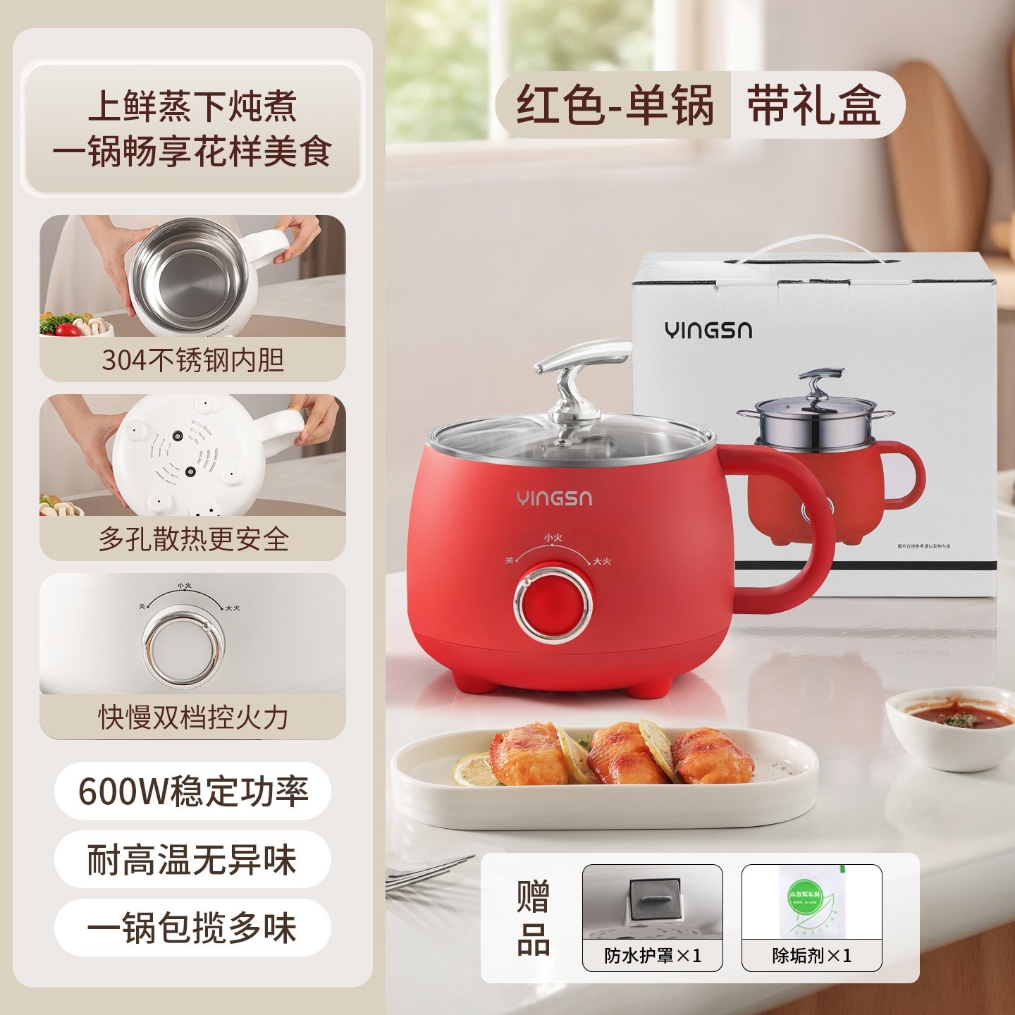 彩盒包装304不锈钢无涂层小功率能火锅学生锅蒸煮电煮锅宿舍多功