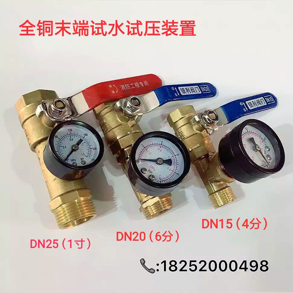 全铜末端试水装置试压测水测气喷淋系统消火栓水管道球阀带压力表