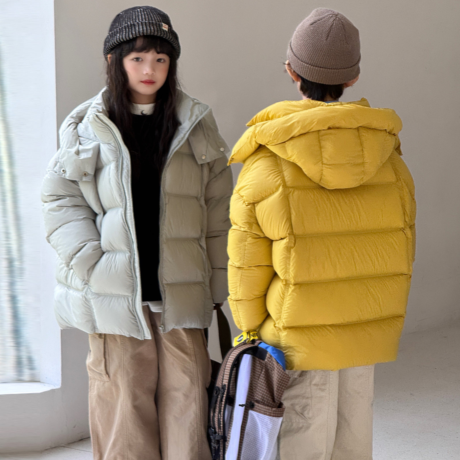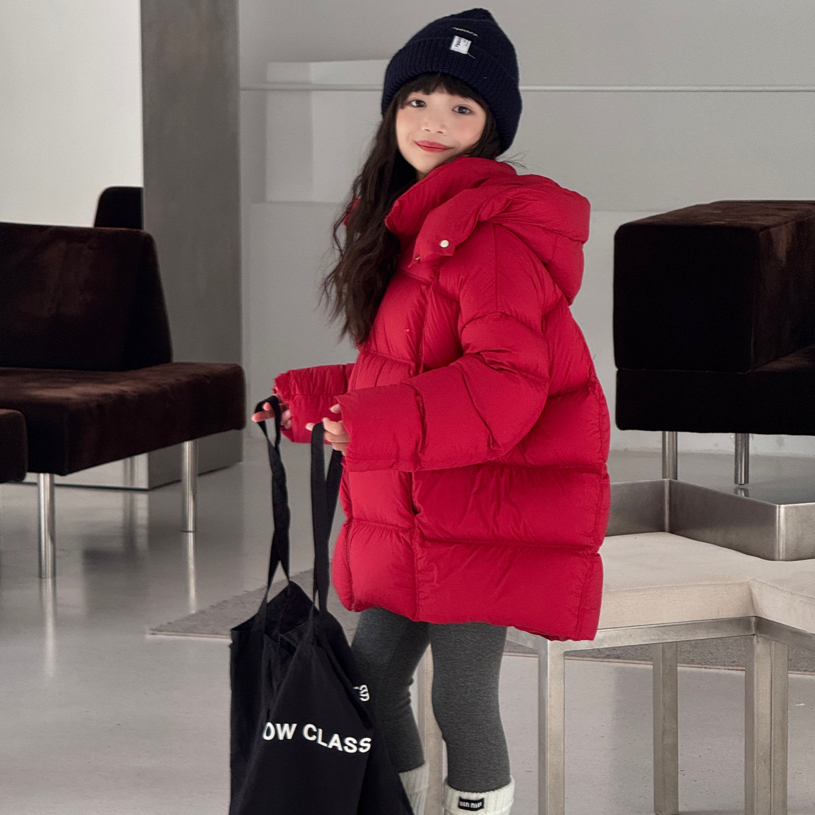 儿童中长款羽绒服韩版新款男女童中大童加厚连帽白鸭绒泡芙外套潮