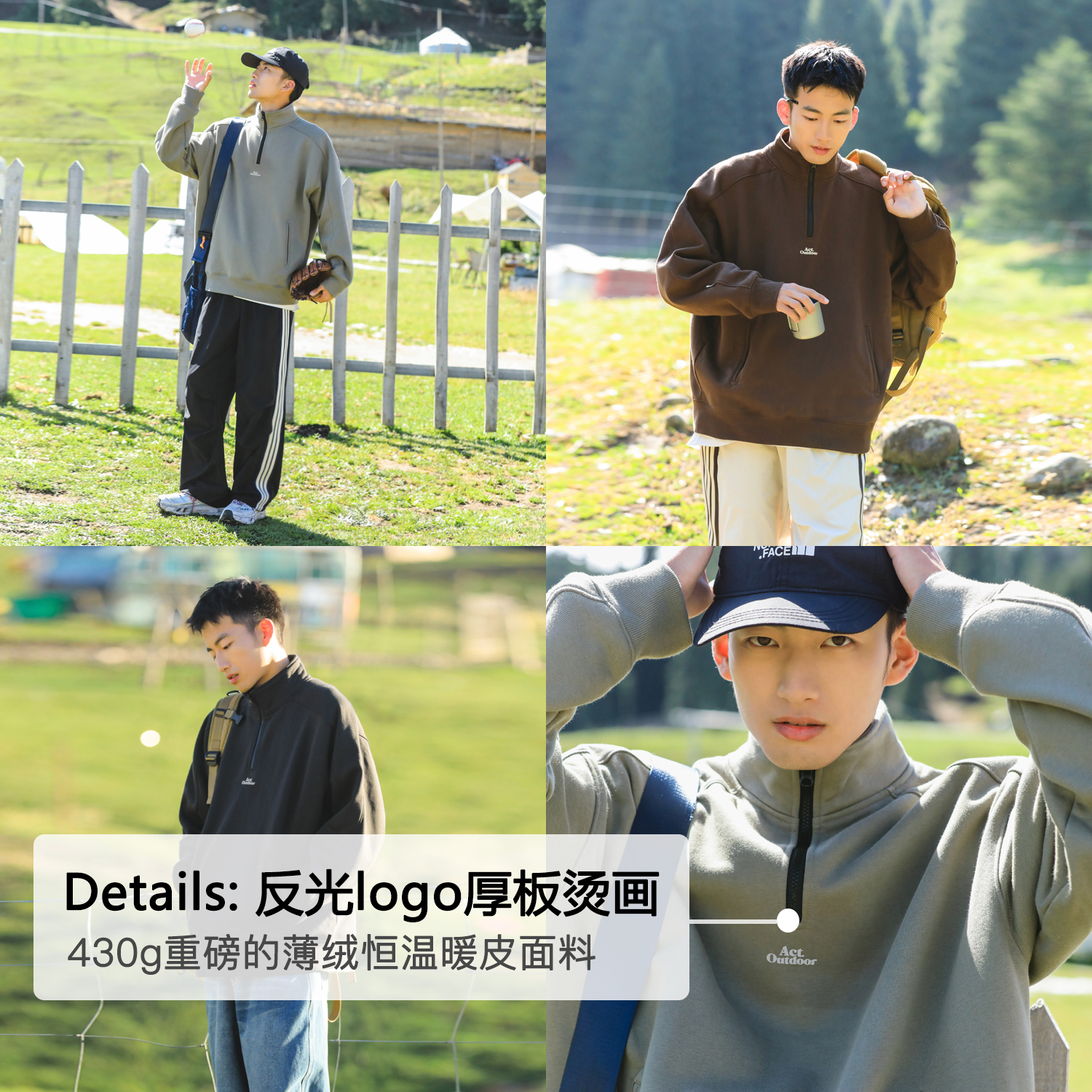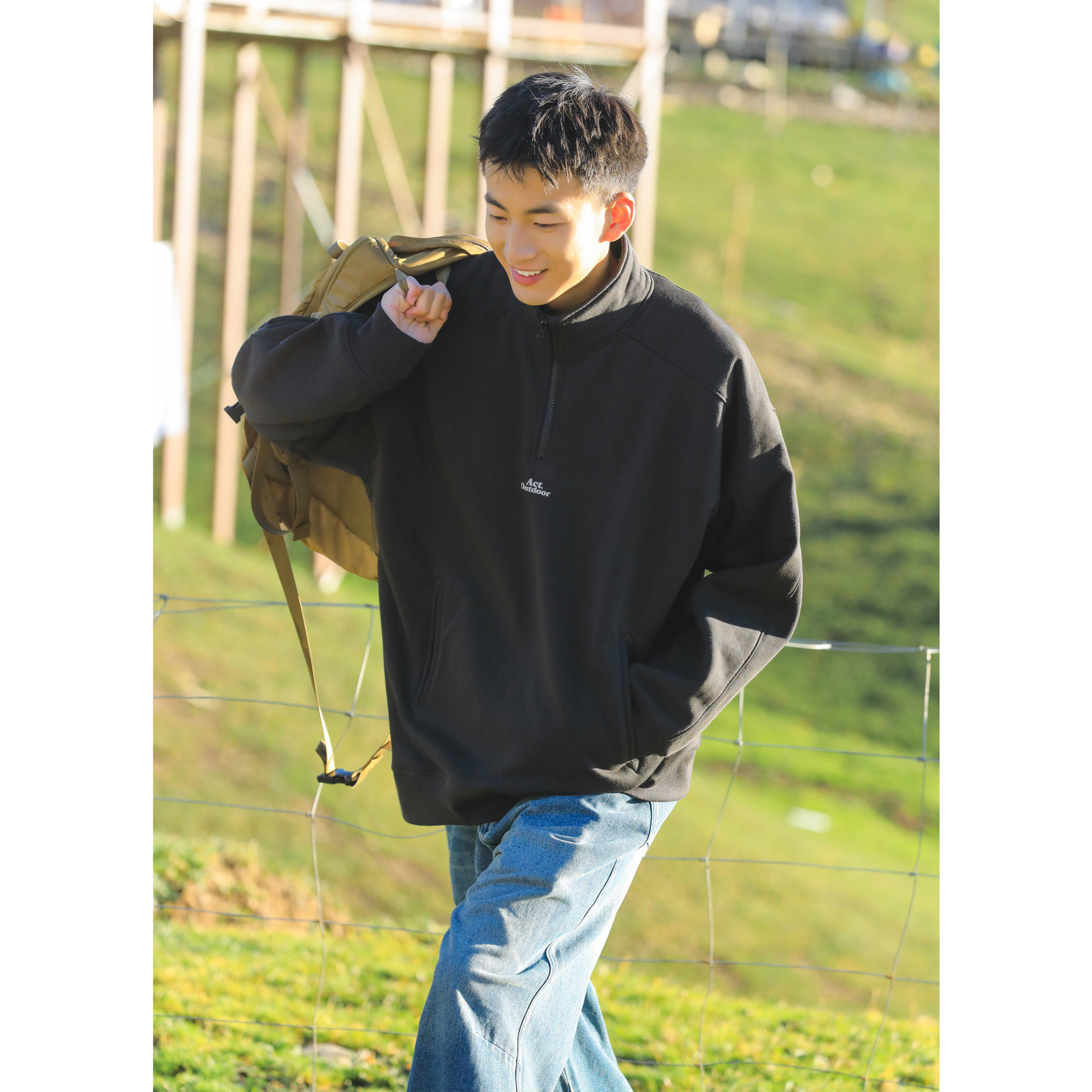 吕小虎保暖加绒半拉链卫衣秋季男生潮牌430g重磅立领休闲上衣外套