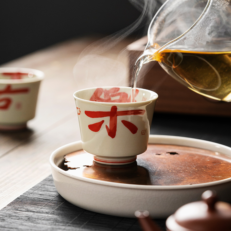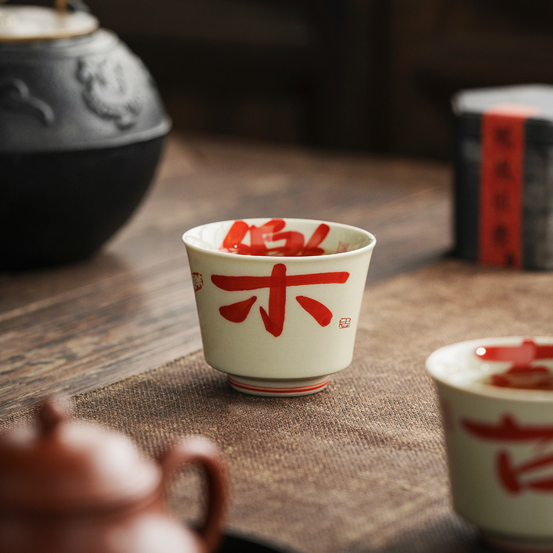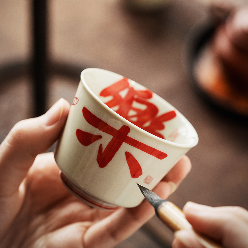 乐字杯品茗杯喜乐对杯主人杯手绘陶瓷功夫茶具小茶杯个人专用单杯