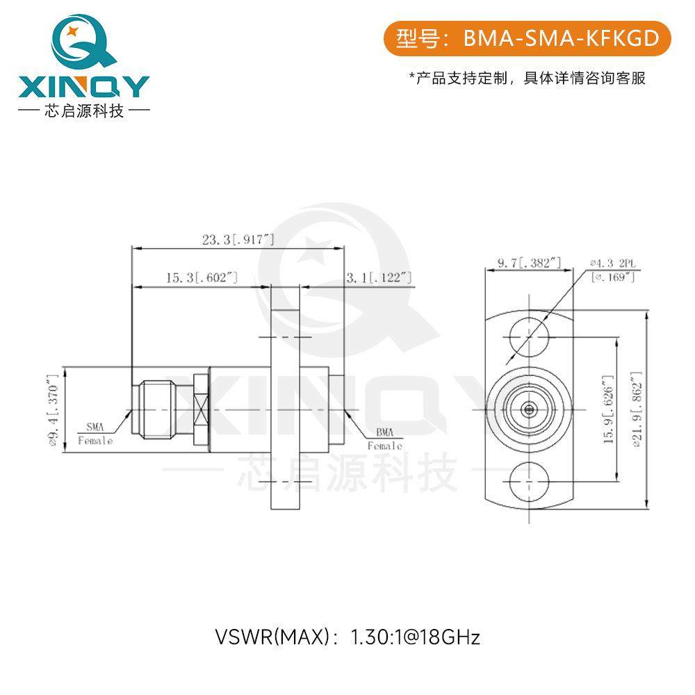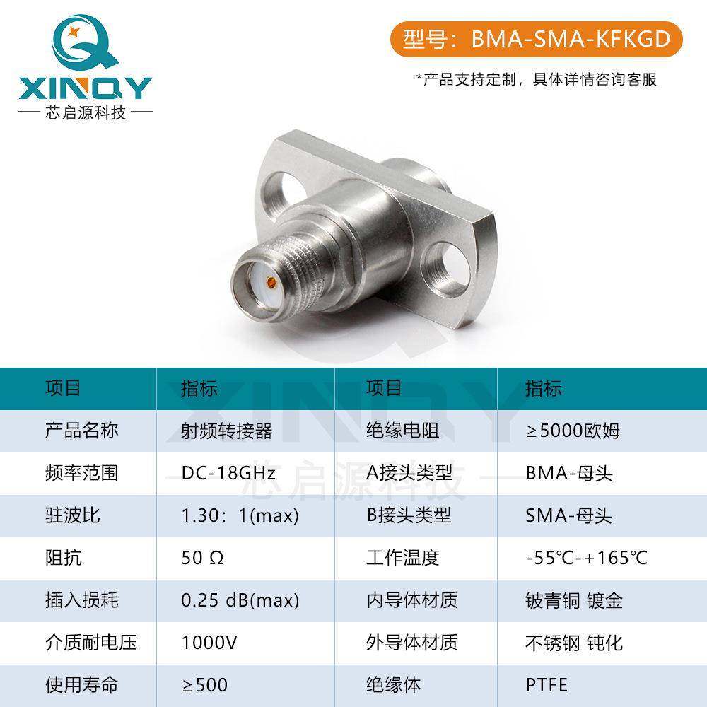 XINQY两孔法兰固定射频头BMA转SMA射频同轴转接器18G转接头
