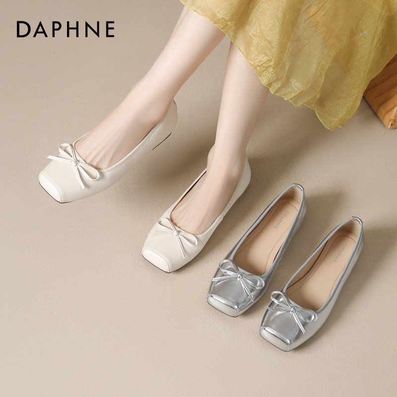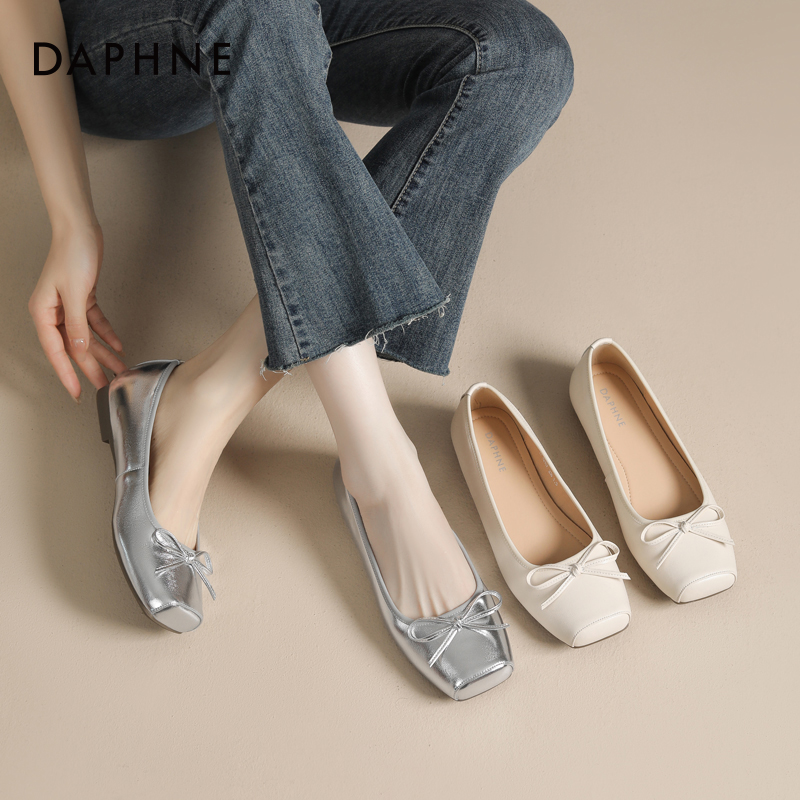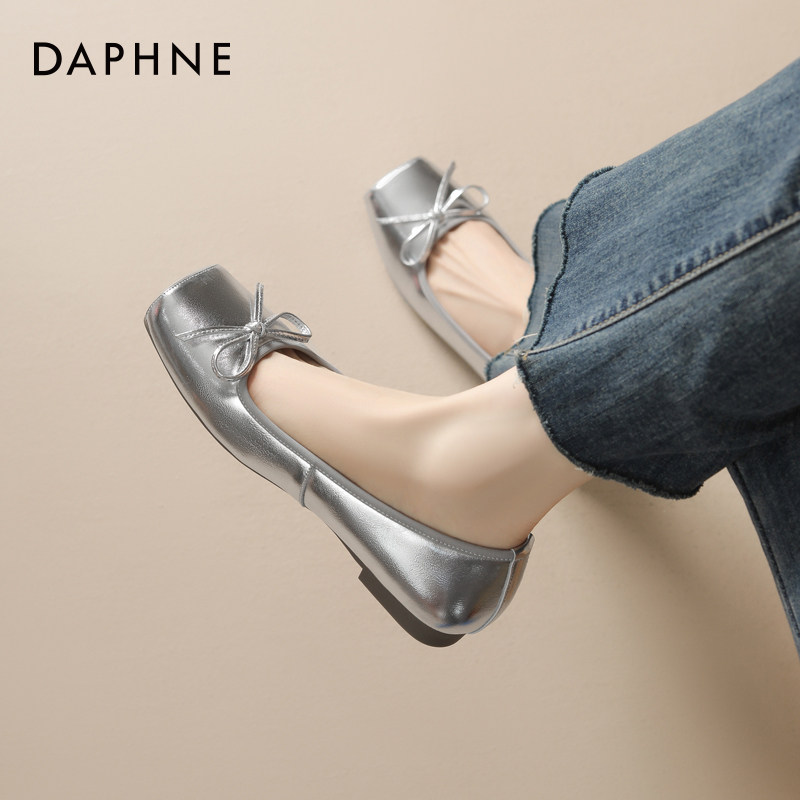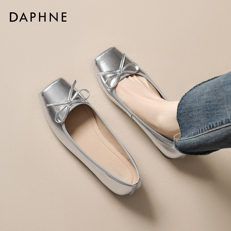 达芙妮银色芭蕾舞鞋单鞋方头低跟