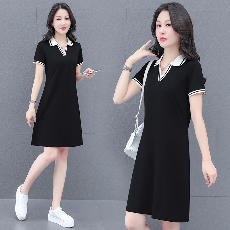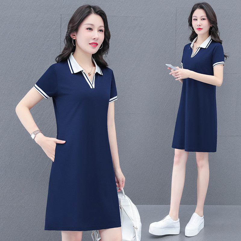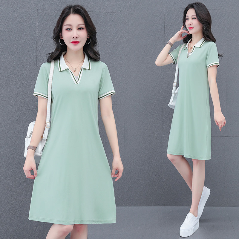 polo领短袖显瘦中长款冰丝连衣裙女夏季女装2025新款妈妈夏装裙子
