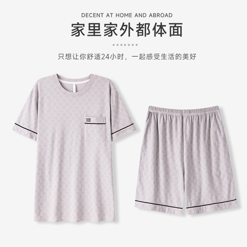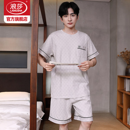 浪莎冰丝睡衣男款夏季透气2025新款短袖短裤青少年家居服套装MP