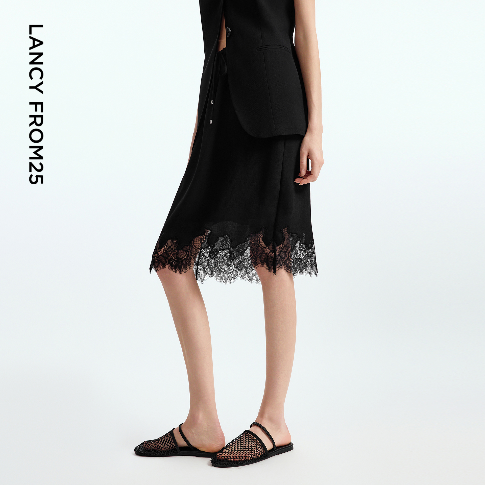 朗姿高腰a字蕾丝法式小香风气质高级感2025年秋季新款半身裙女