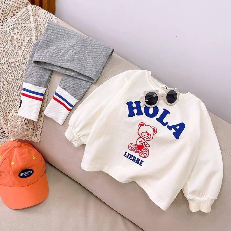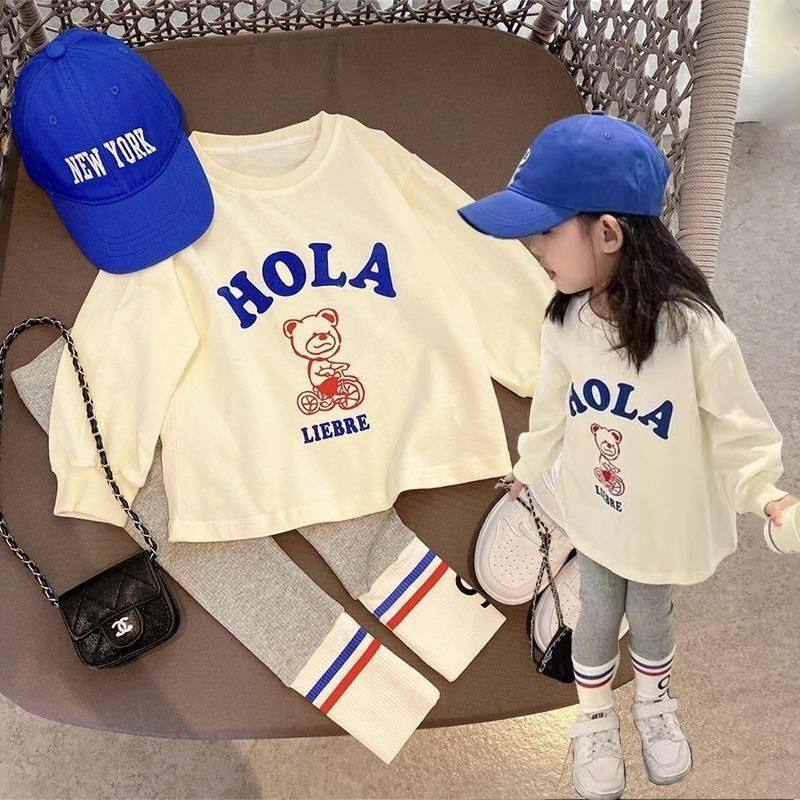 童装春季新款女童套装宝宝洋气棉柔软衣服儿童时髦休闲T恤两件套
