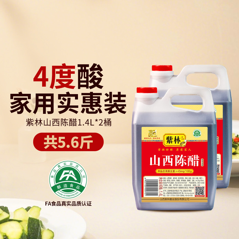 紫林山西陈醋酿造食醋厨房调味凉拌点蘸烹饪商用家用1.4L*2桶