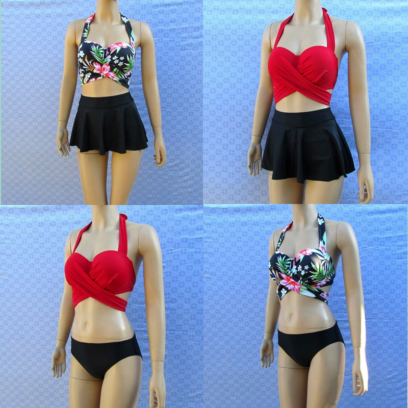 大罩杯泳衣女分体大胸钢托聚拢D/E/F比基尼高腰显瘦泡温泉游泳衣