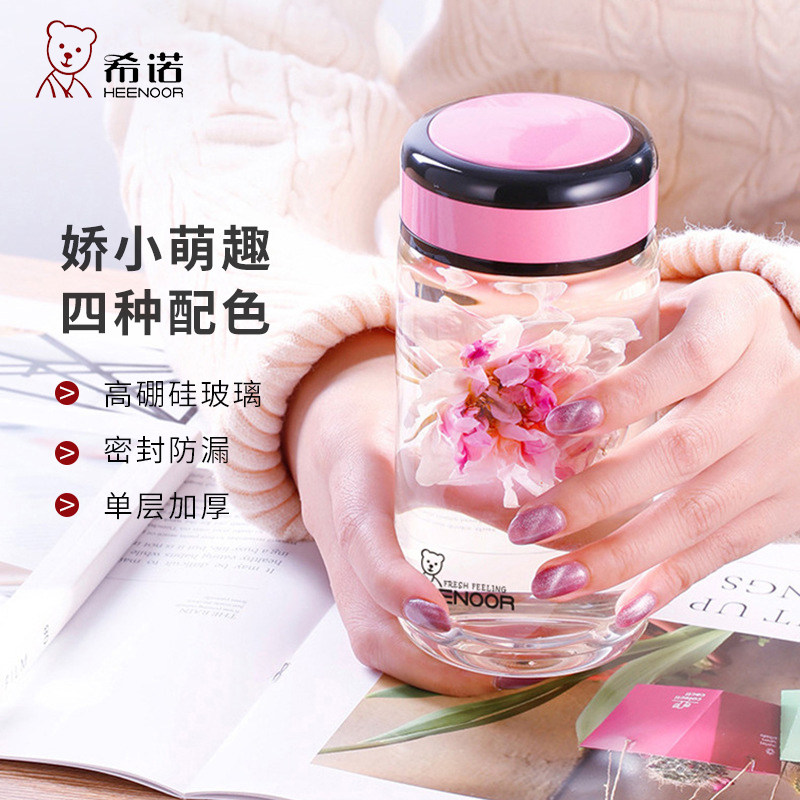 希诺少女心玻璃杯便携随手茶杯