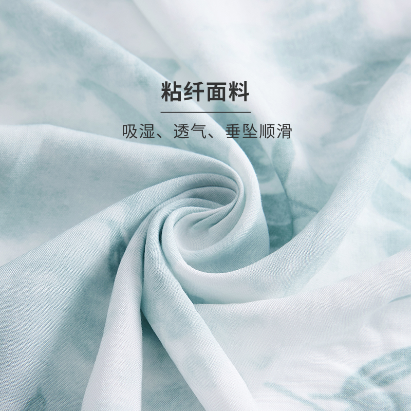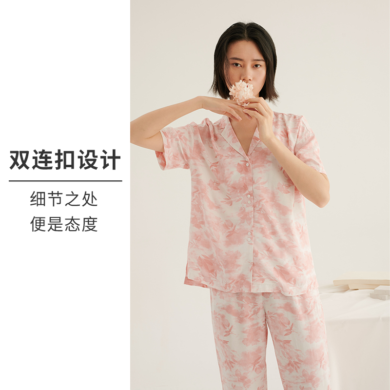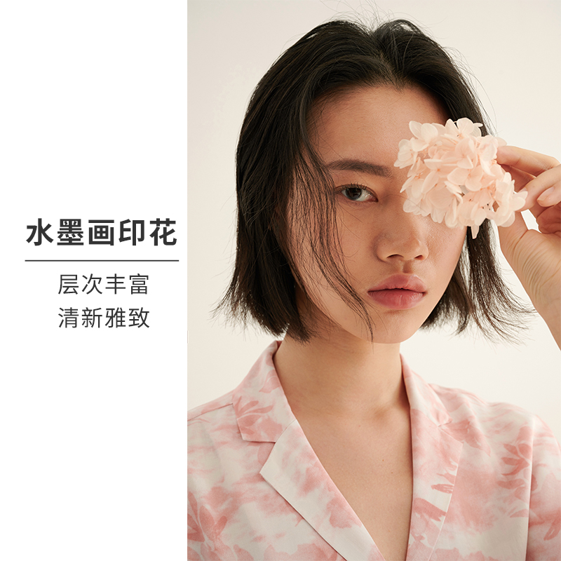 HSIA遐睡衣女夏季新款水墨画印花翻领短袖中腰长裤宽松家居服套装