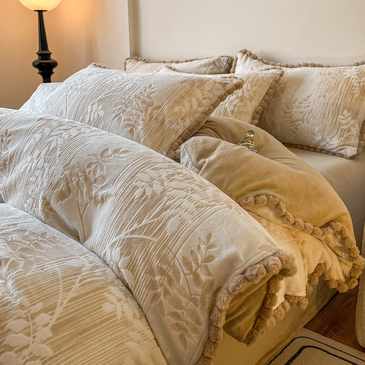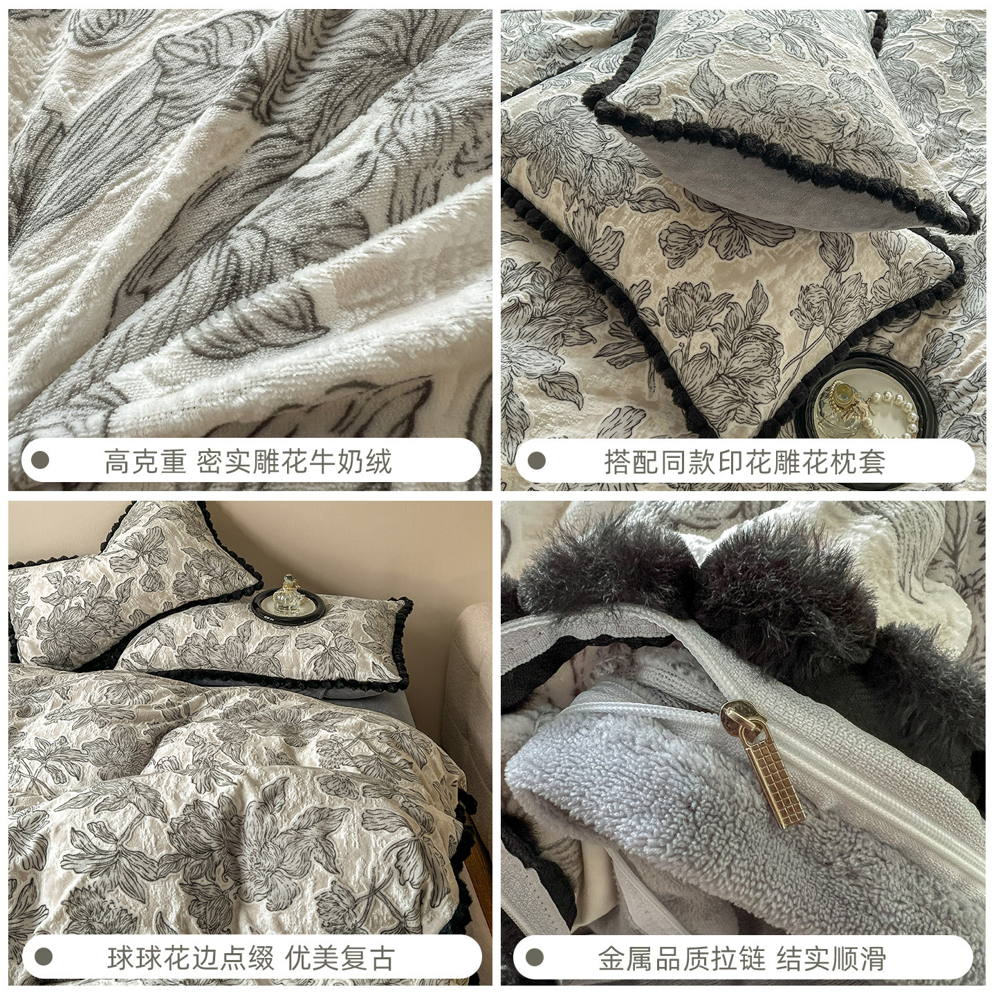 法式立体雕花牛奶绒冬季三四件套