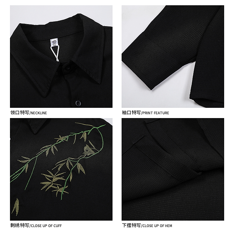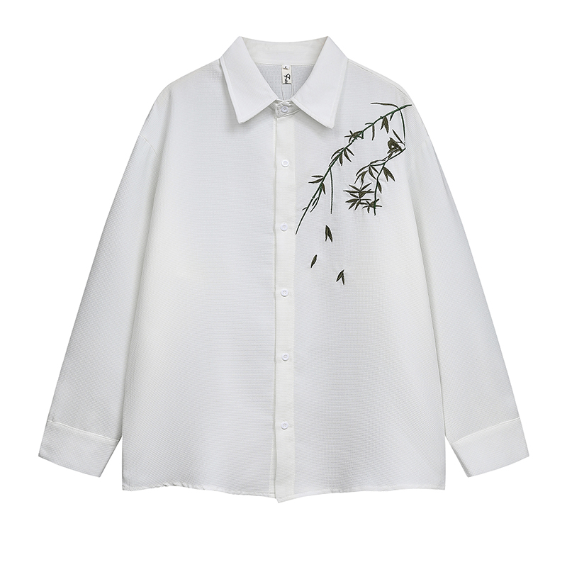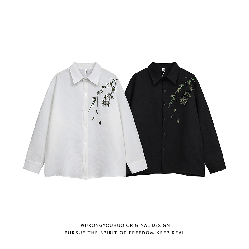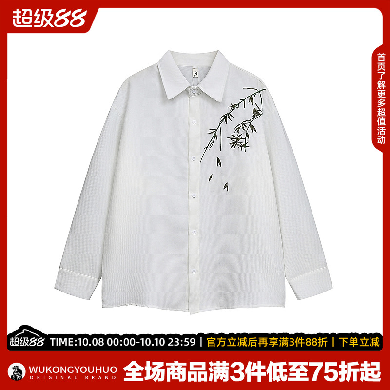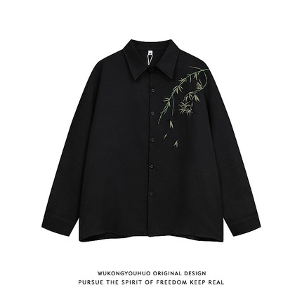 悟空有货新中式竹子刺绣中国风长袖衬衫男女春秋宽松唐装情侣衬衣