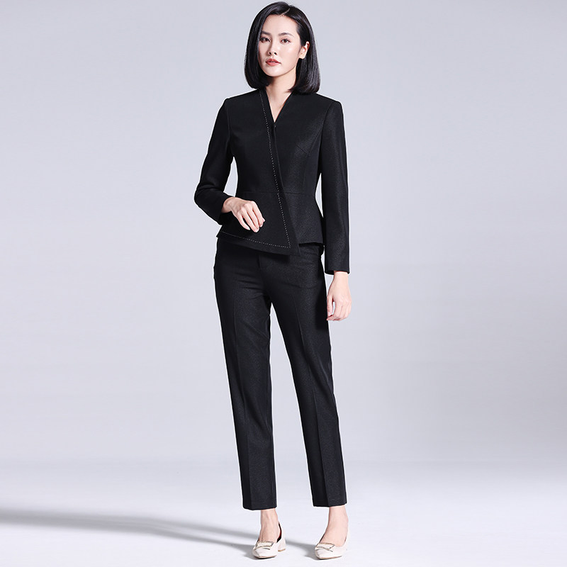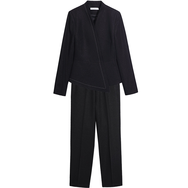 璐丝百丽春装女士黑色西装套装女职业西服面试时尚气质正装工作服
