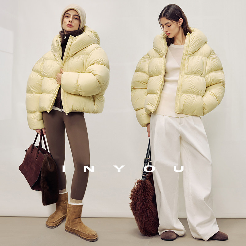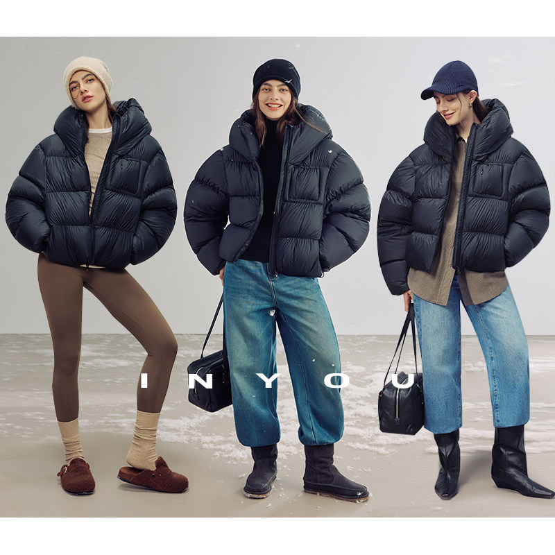 因由 95白鸭绒2025秋冬新款外套连帽立体保暖绗短款羽绒服女