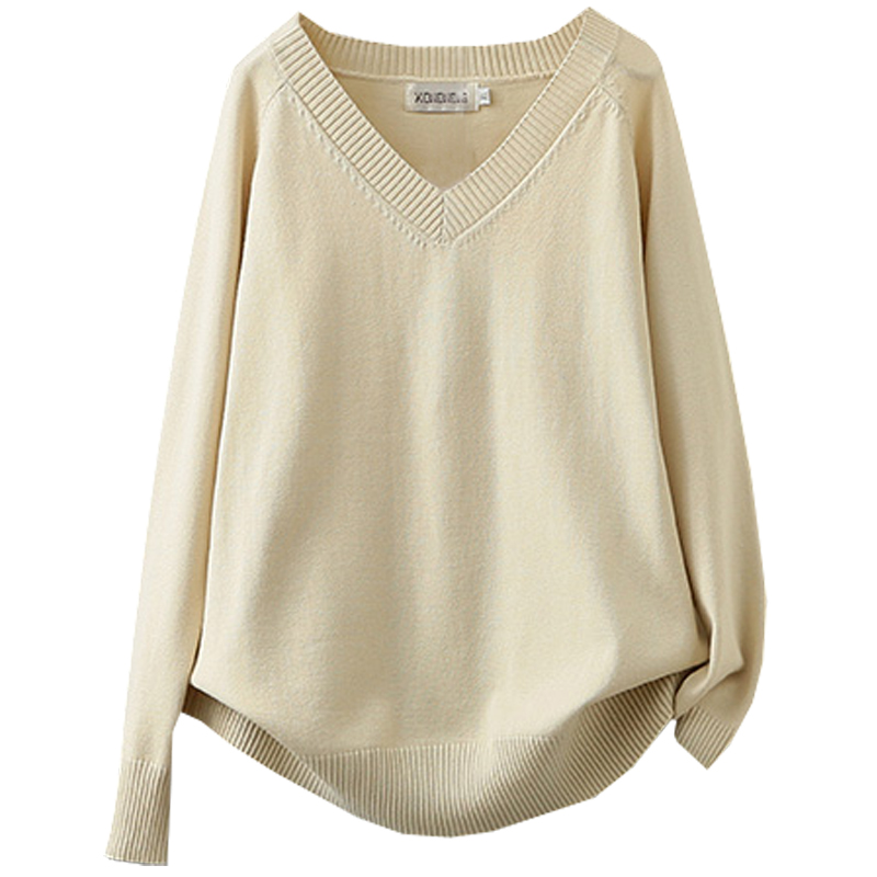 秋冬大码200斤v领毛衣女套头宽松慵懒风复古针织衫遮肚显瘦上衣潮