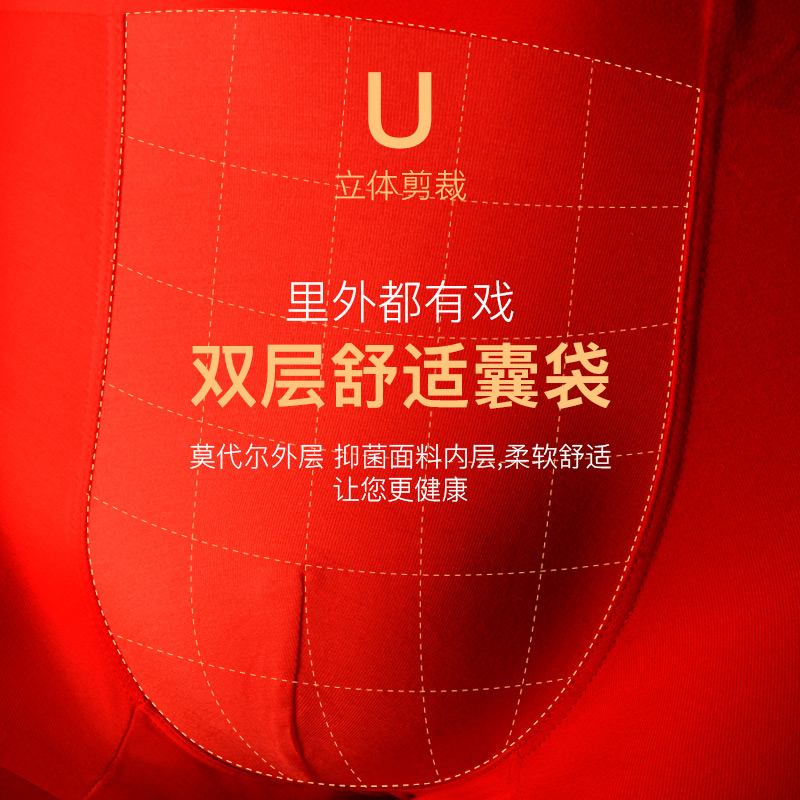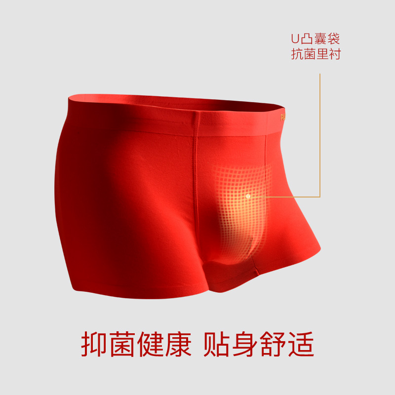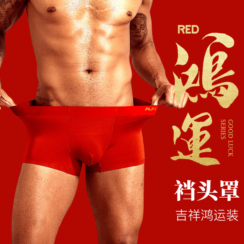 AUN红色内裤男夏季透气平角裤冰丝莫代尔抑菌本命年四角裤