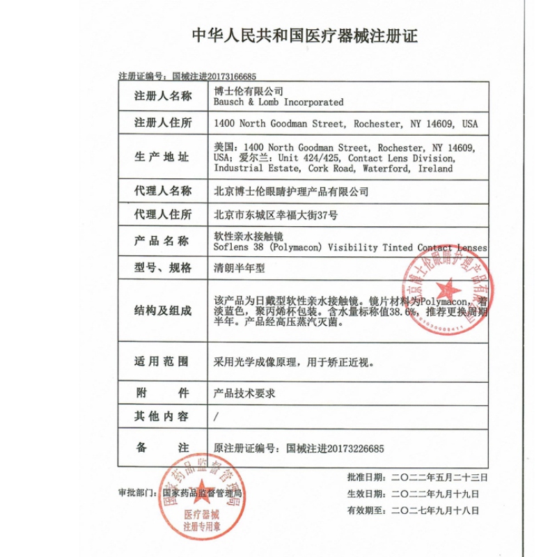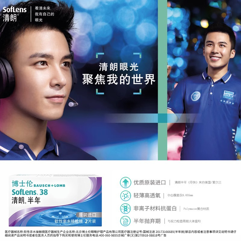 博士伦原装进口清朗半年抛2片装盒隐形近视眼镜透明片旗舰店正品