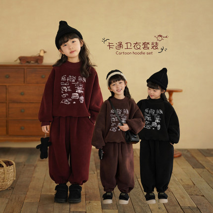砚台家女童加绒卫衣套装宝宝卡通两件套儿童运动卫裤保暖冬季新款
