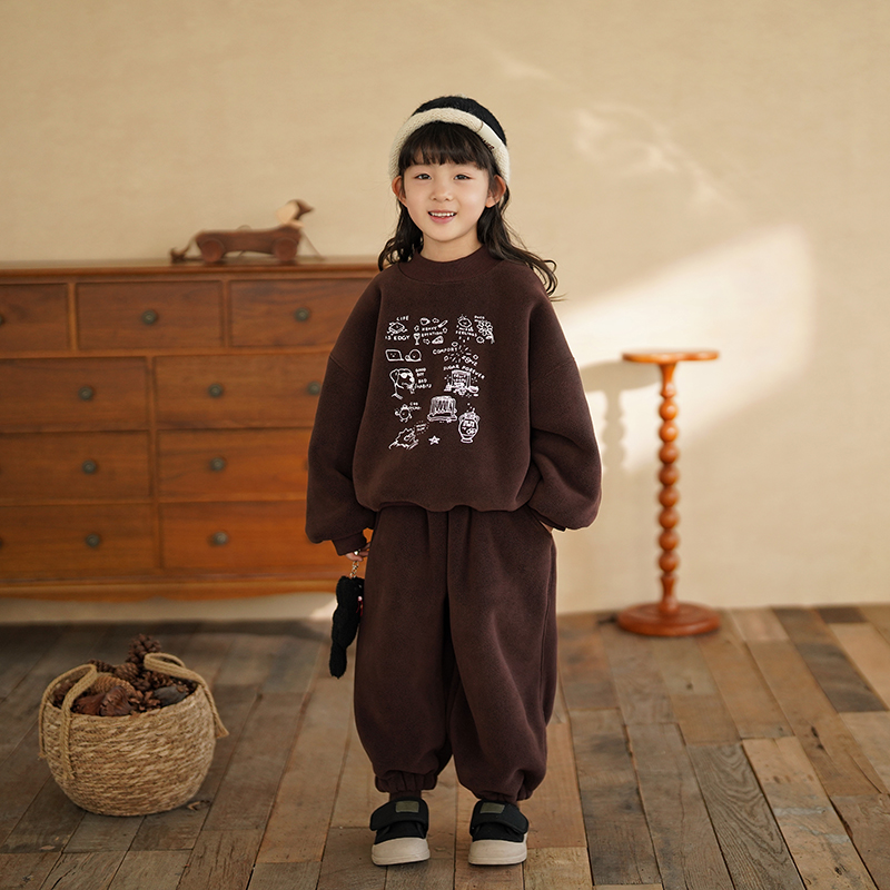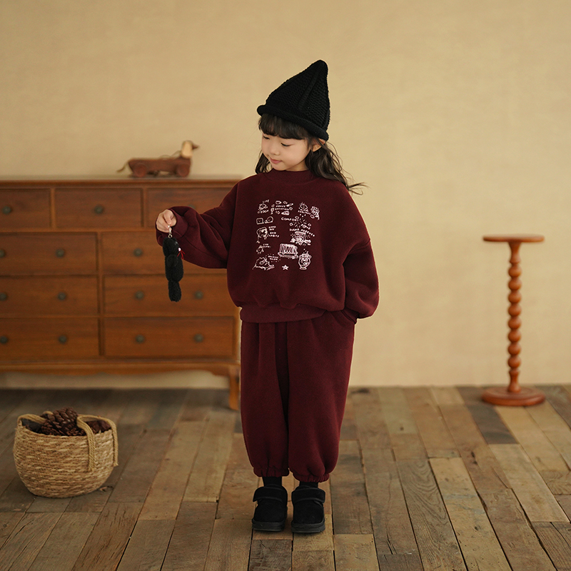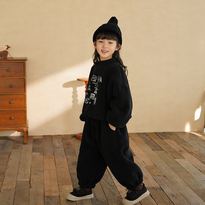 砚台家女童加绒卫衣套装
