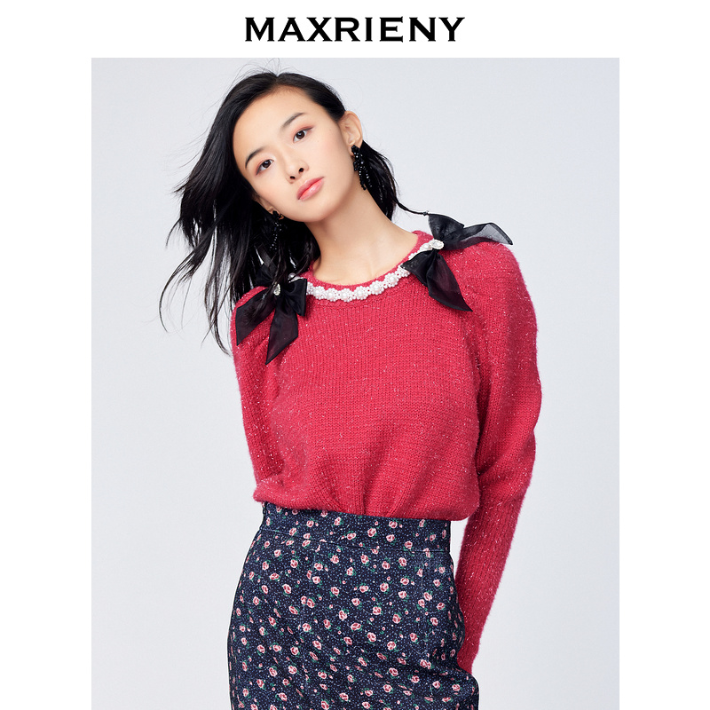 【奥莱】MAXRIENY蝴蝶结套头针织衫女冬季圣诞羊毛衫短款