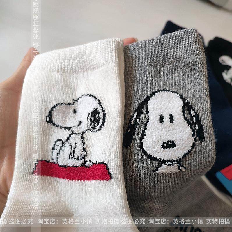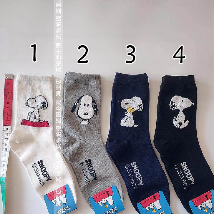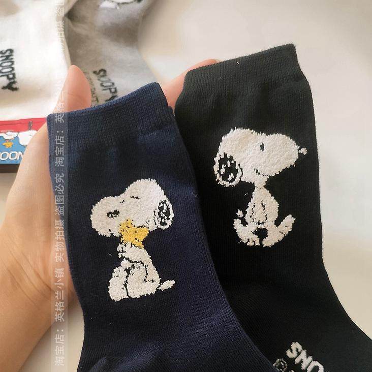 进口韩国东大门新款袜子女秋冬正品史努比中筒小狗图案棉袜可爱厚