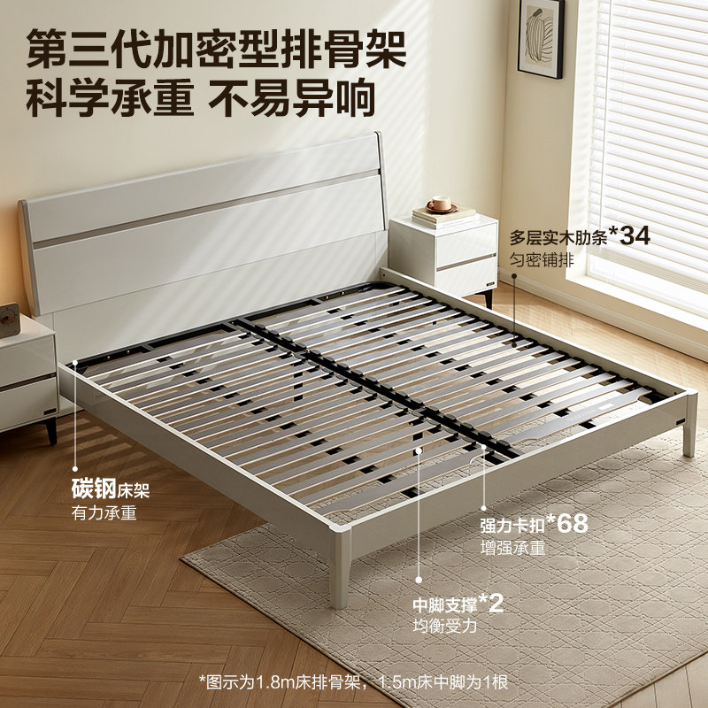 全友家居实木框架双人床