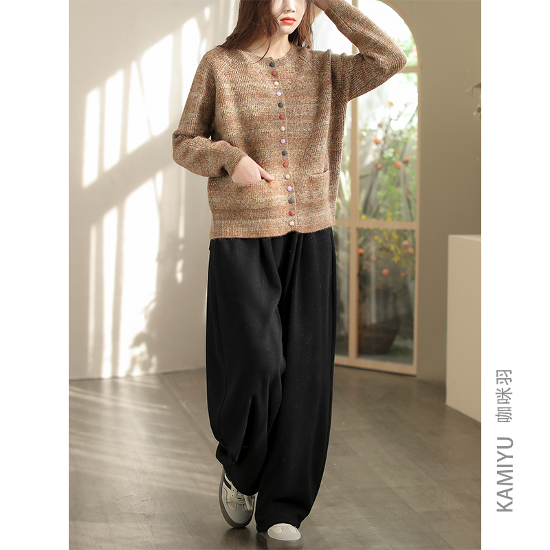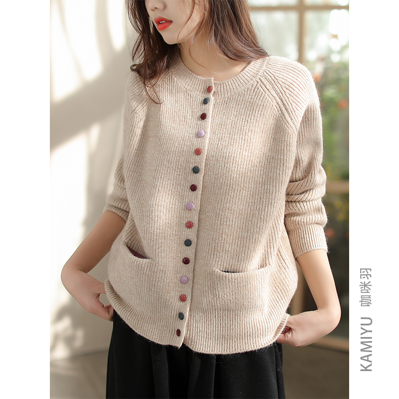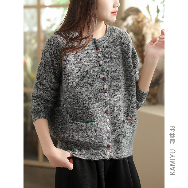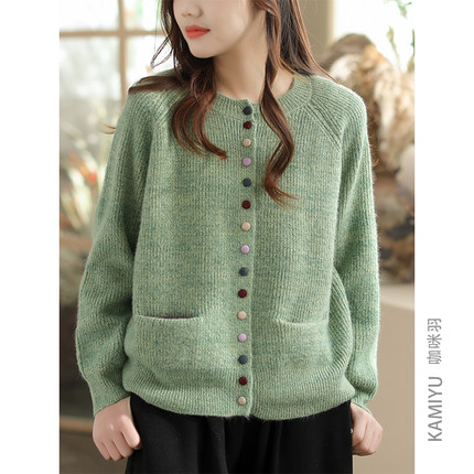 咖咪羽针织毛衣女秋冬新款慵懒宽松气质圆领韩系百搭女装上衣开衫