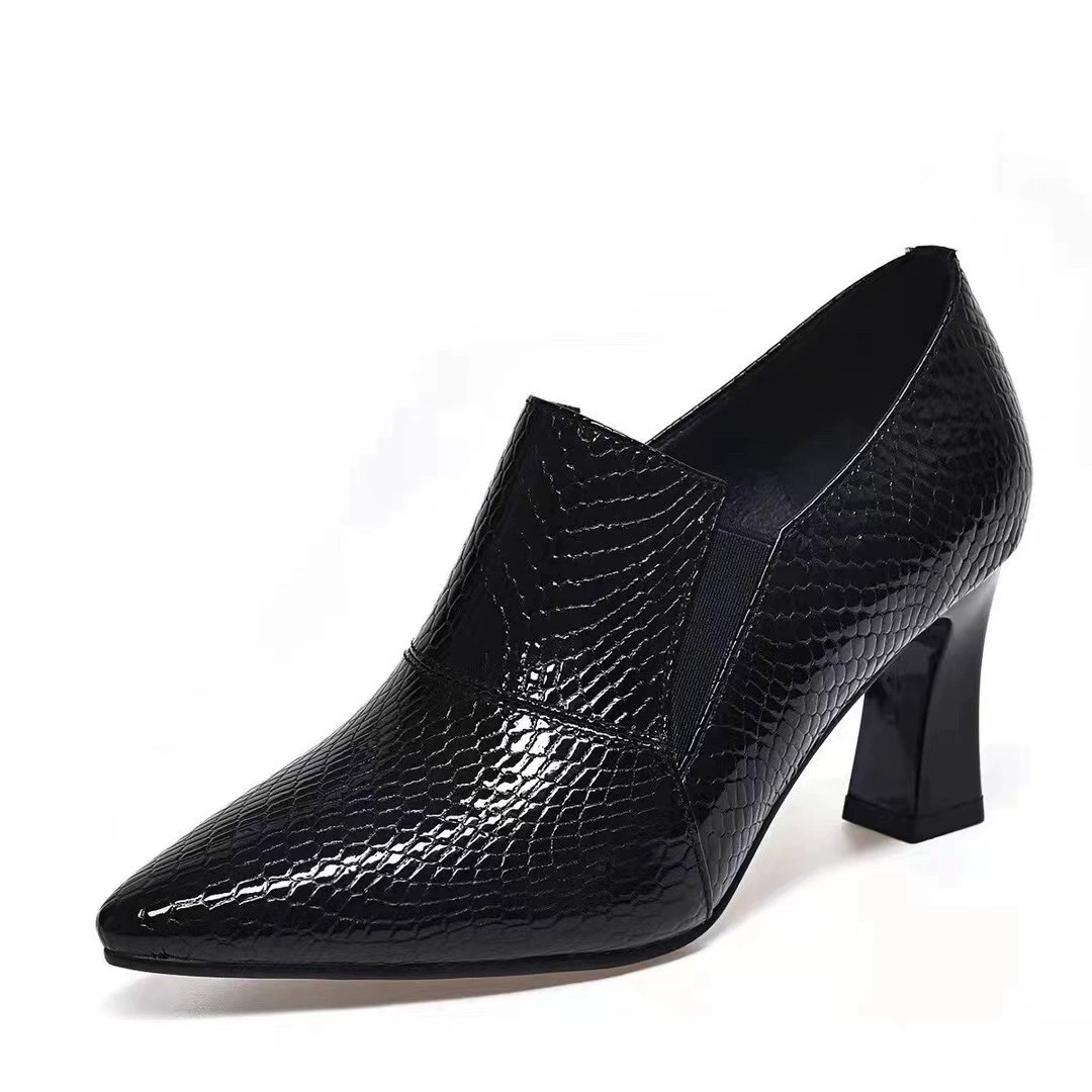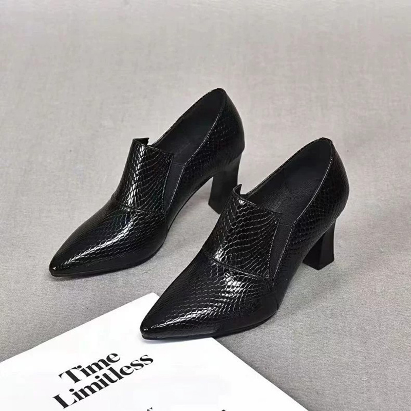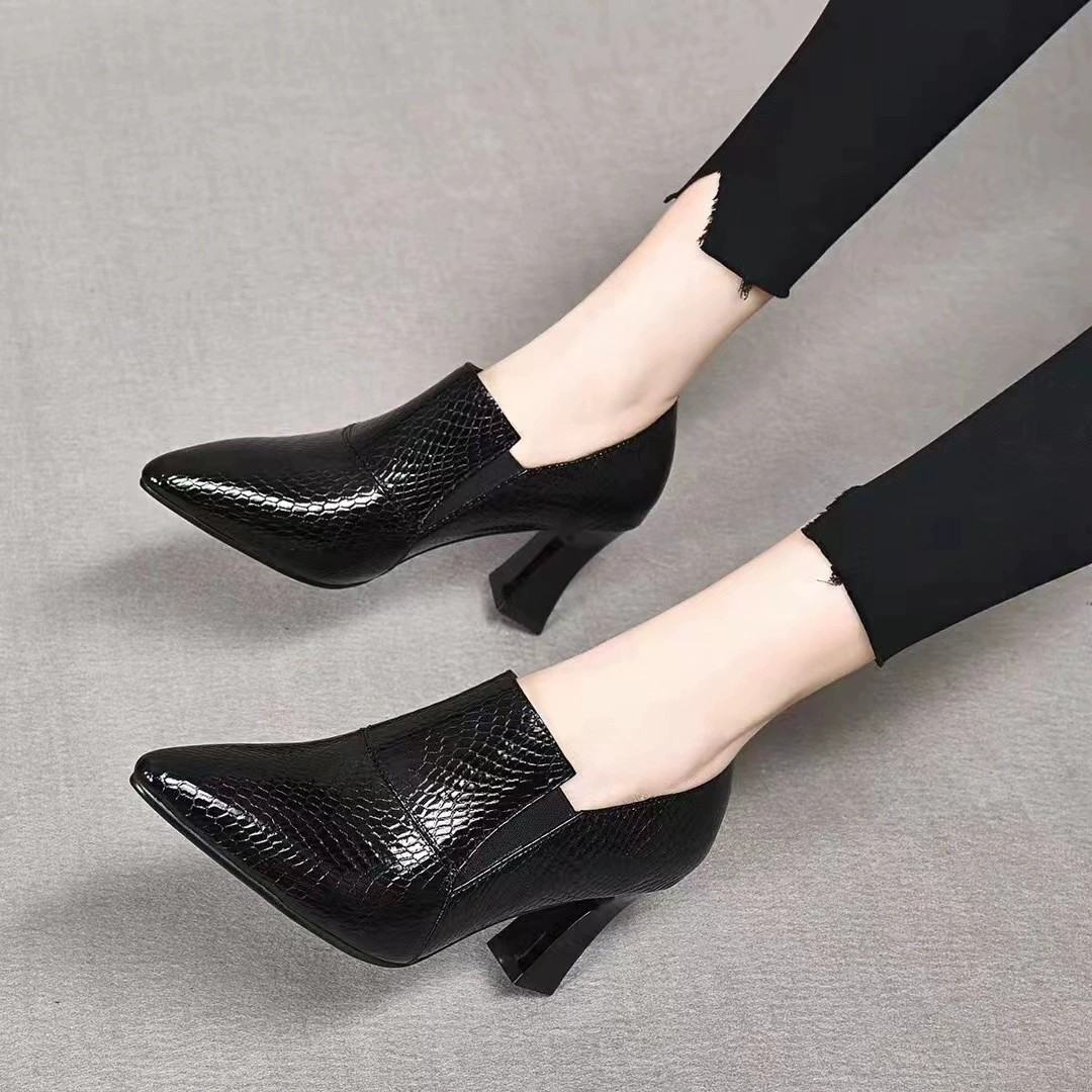 2025夏季新款高跟单鞋一脚蹬深口真皮女鞋时尚英伦风尖头粗跟皮鞋