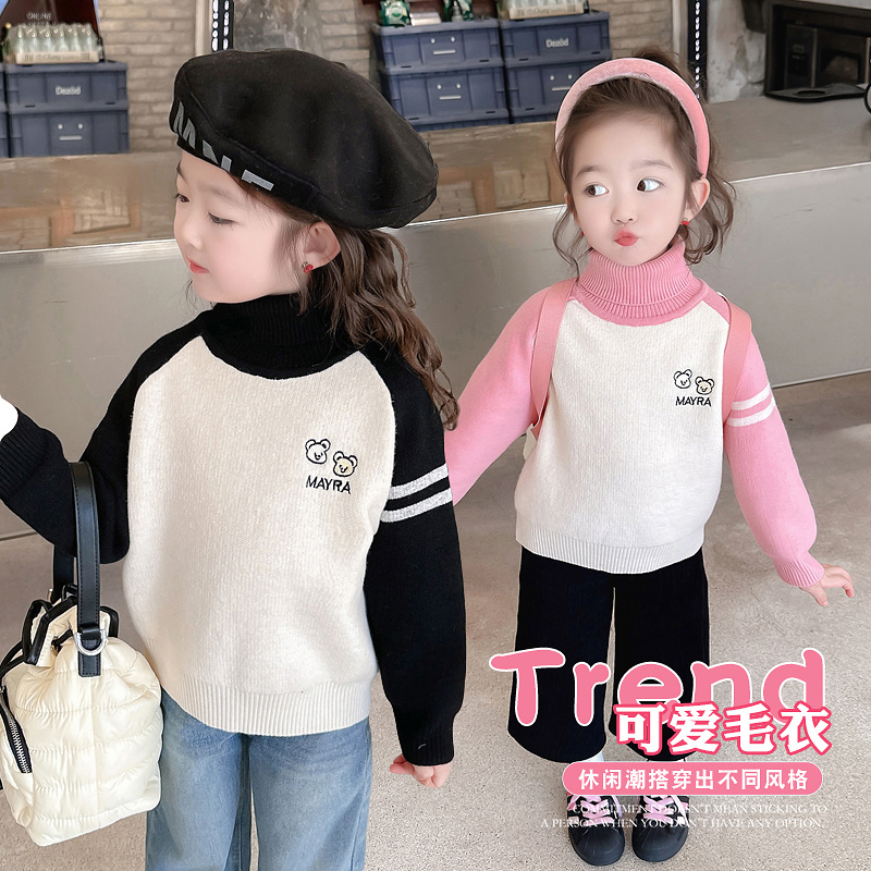 女童高领毛衣秋冬装2025新款儿童洋气加绒加厚女孩时髦针织打底衫