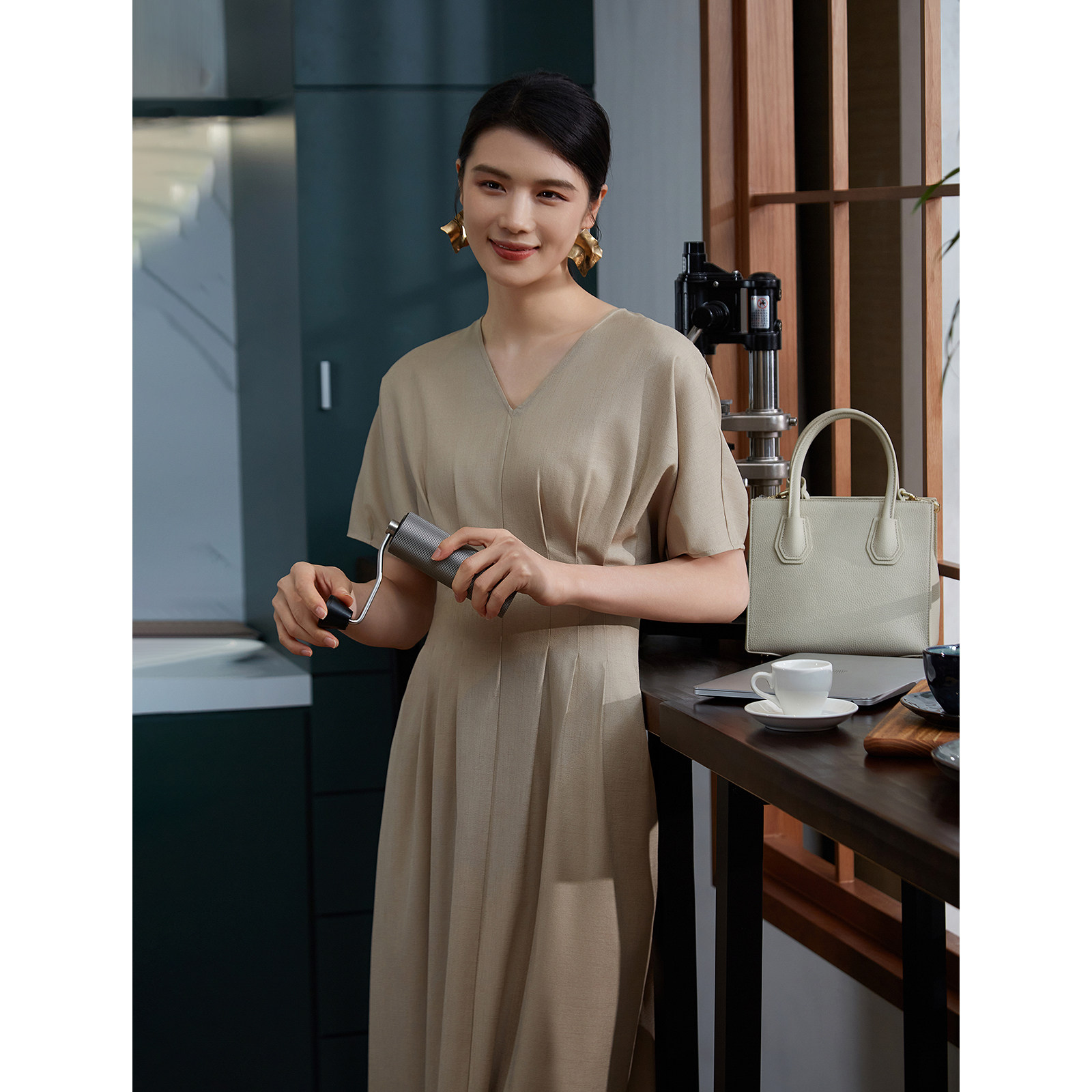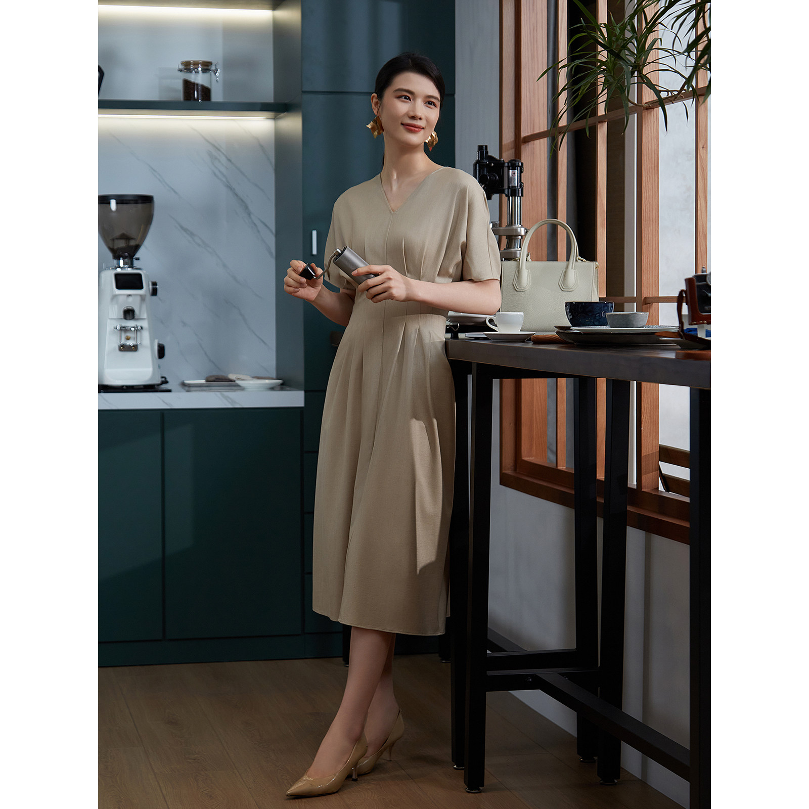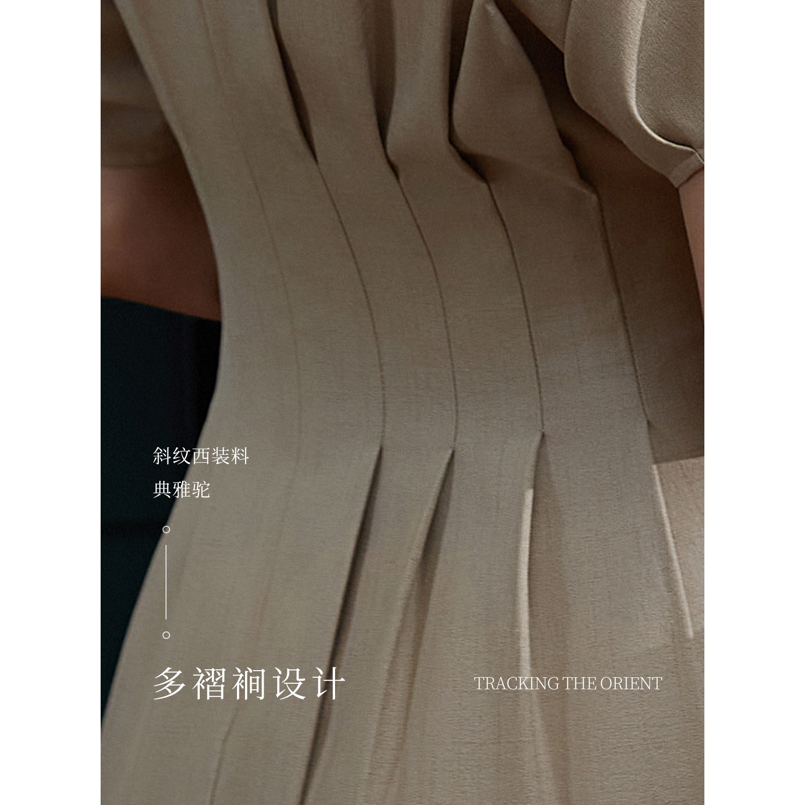 【商场同款】BBLLUUEE/粉蓝衣橱2025秋装轻斜纹褶裥收腰连衣裙女
