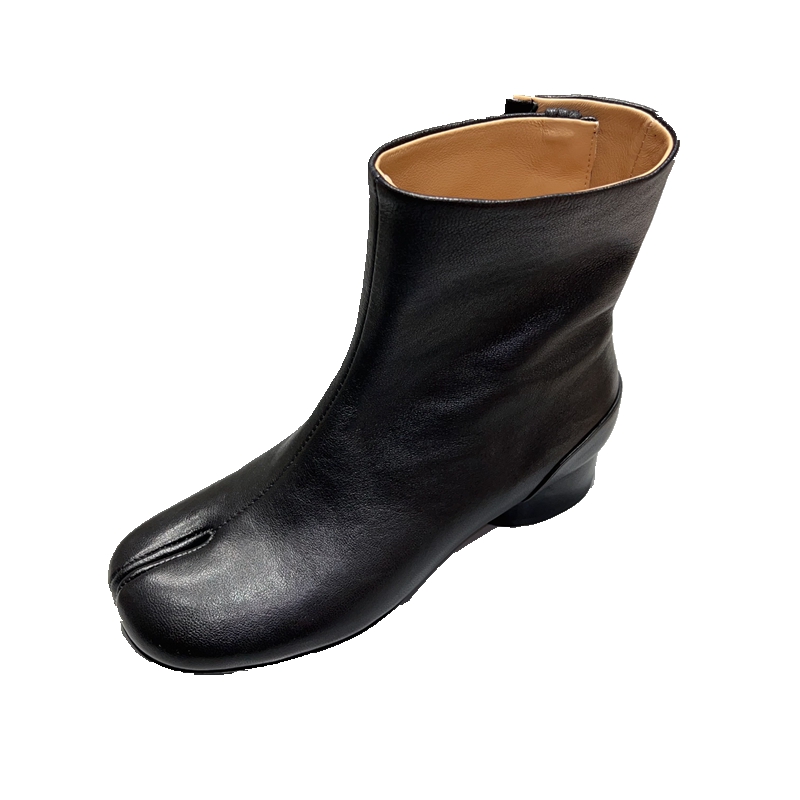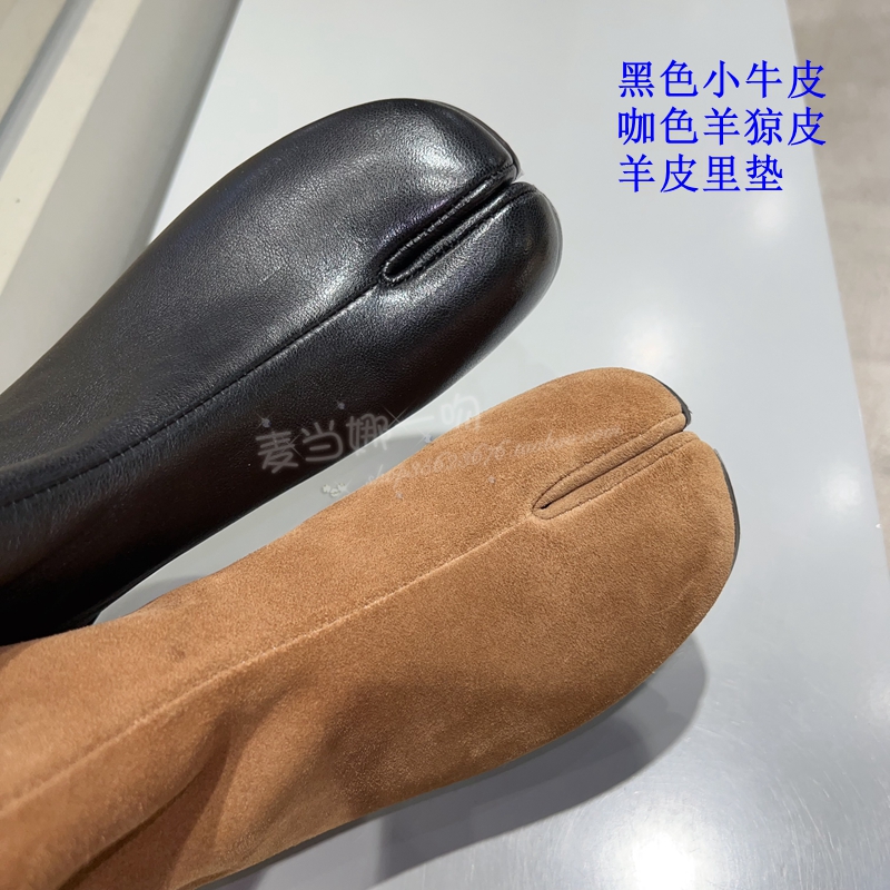 欧洲站2025冬新款小牛皮时尚圆头简约分趾玛吉粗跟侧扣时装女短靴