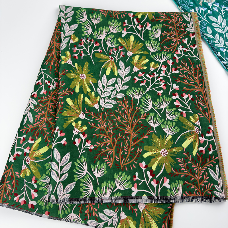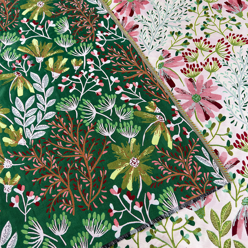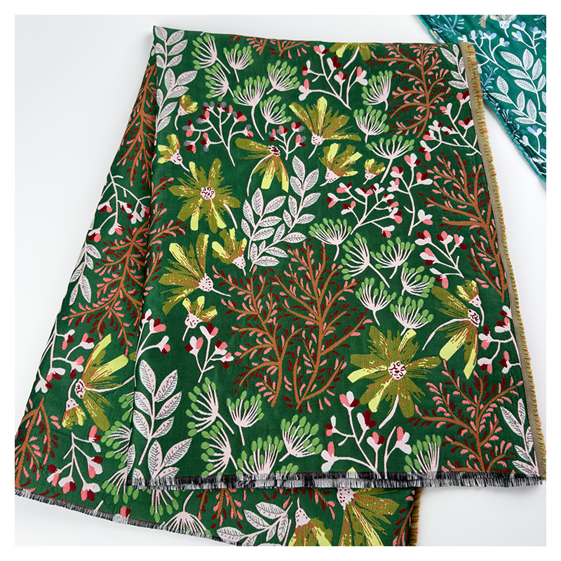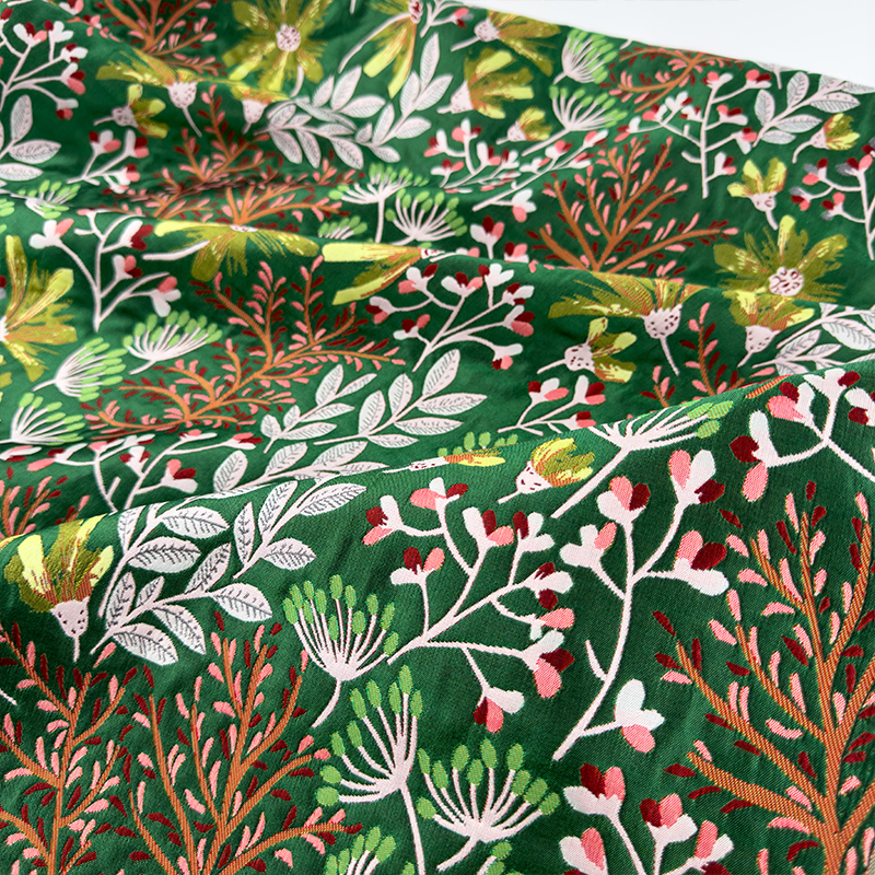 精致绿粉织锦提花布料服装面料汉服旗袍礼服布料高档设计师面料