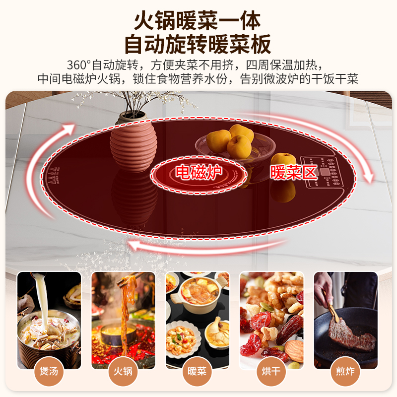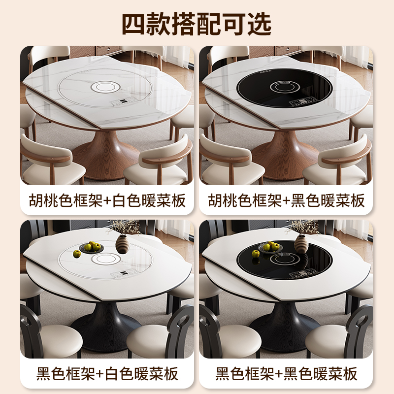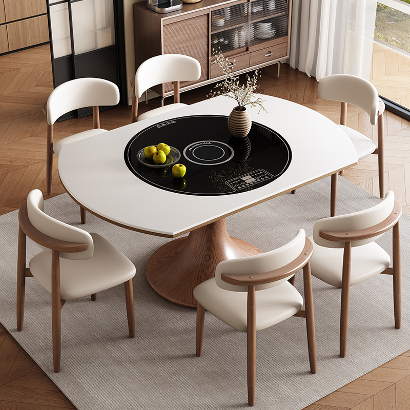 中古风高端实木岩板餐桌带电磁炉