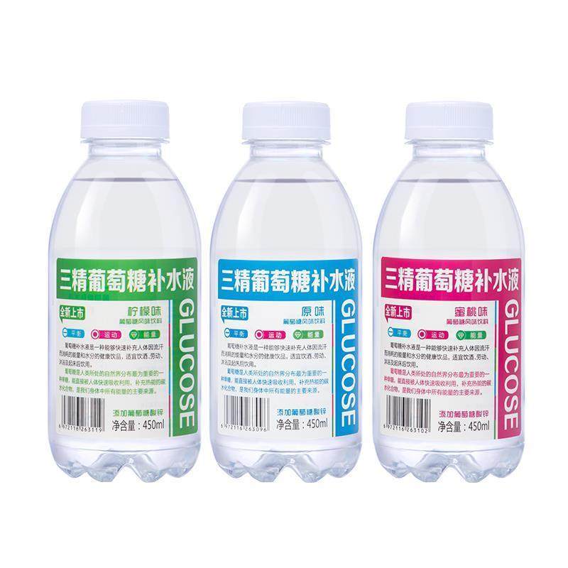 新货三精葡萄糖补水液450ml*15瓶整箱运动健身蜜桃柠檬混合补水饮