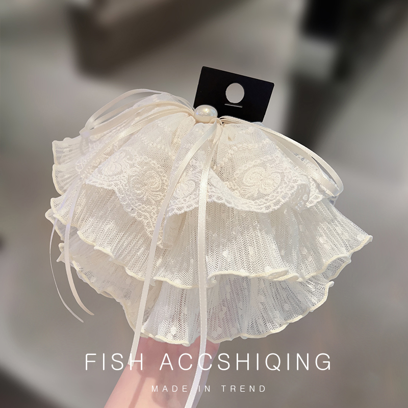 韩系梦幻蝴蝶结马尾夹发夹刺绣蕾丝抓夹后颅半扎发鲨鱼夹仙女发饰