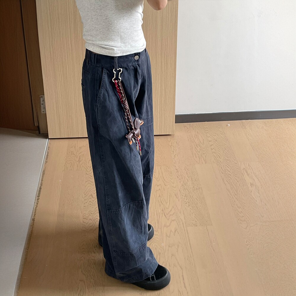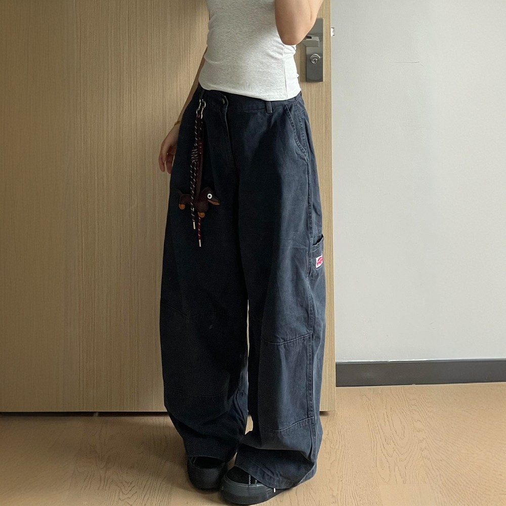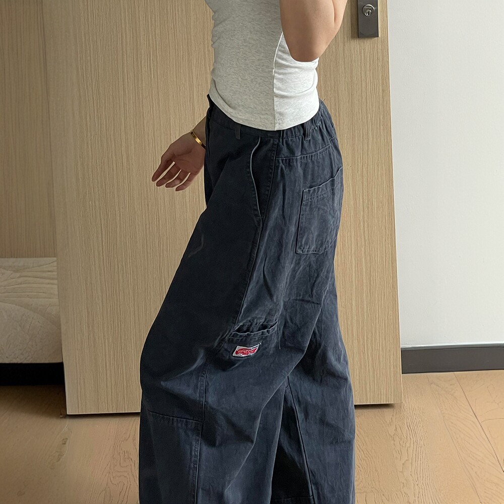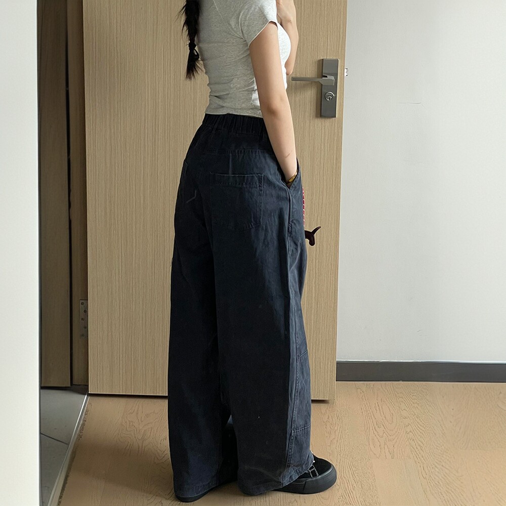 特大码美式复古廓形设计弯刀牛仔裤女胖mm高腰显瘦设计感阔腿裤子