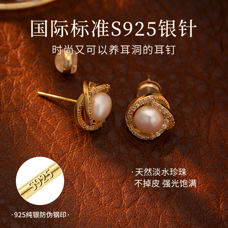 天然淡水珍珠耳钉2025新款耳饰精致纯银耳钉女设计感小众耳饰耳环