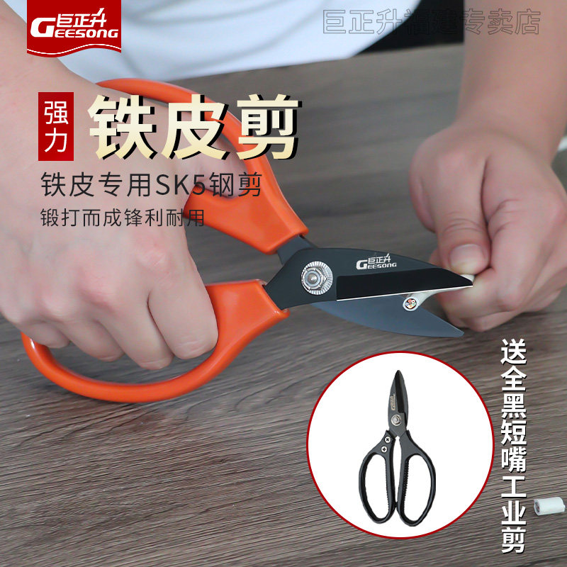 巨正升 SK5锰钢短嘴大头工业用剪刀 剪铁丝电线铁皮 家用五金剪子