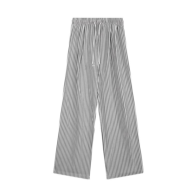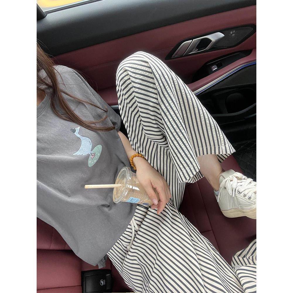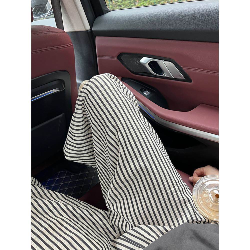 黑白条纹裤女夏薄款胖妹妹高腰宽松显瘦慵懒风遛弯阔腿休闲裤子
