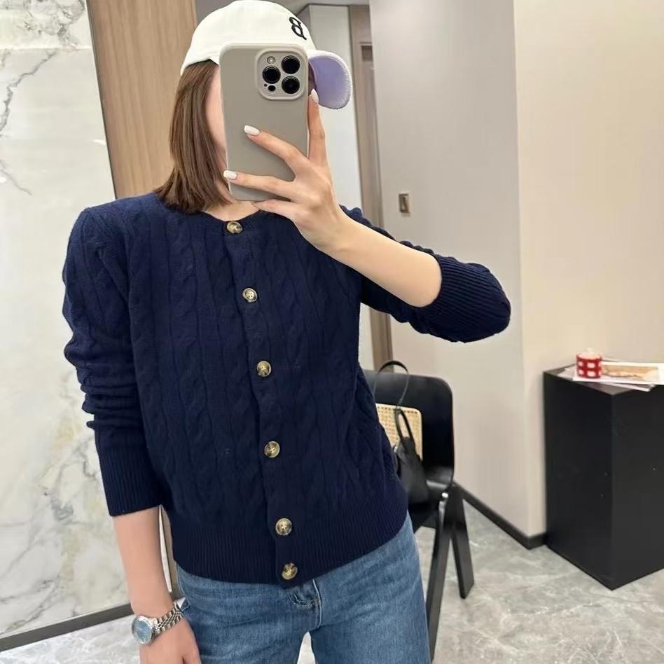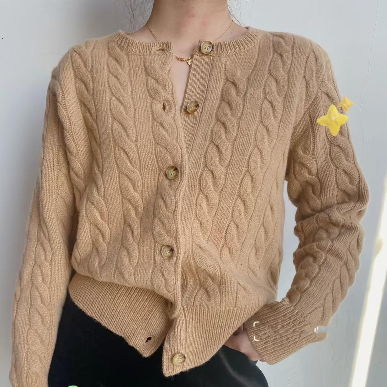 100%羊毛针织开衫女秋冬麻花毛衣外套宽松加厚小马刺绣时尚羊绒衫