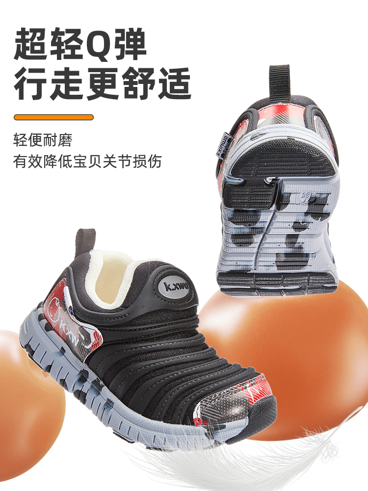 开心娃儿童加绒保暖鞋毛毛虫童鞋