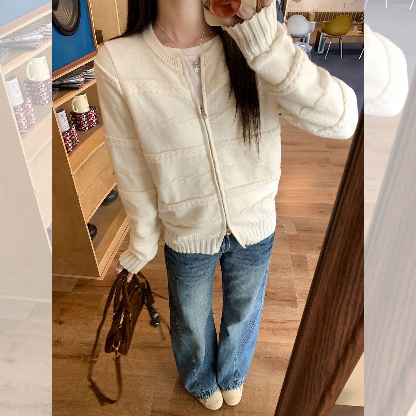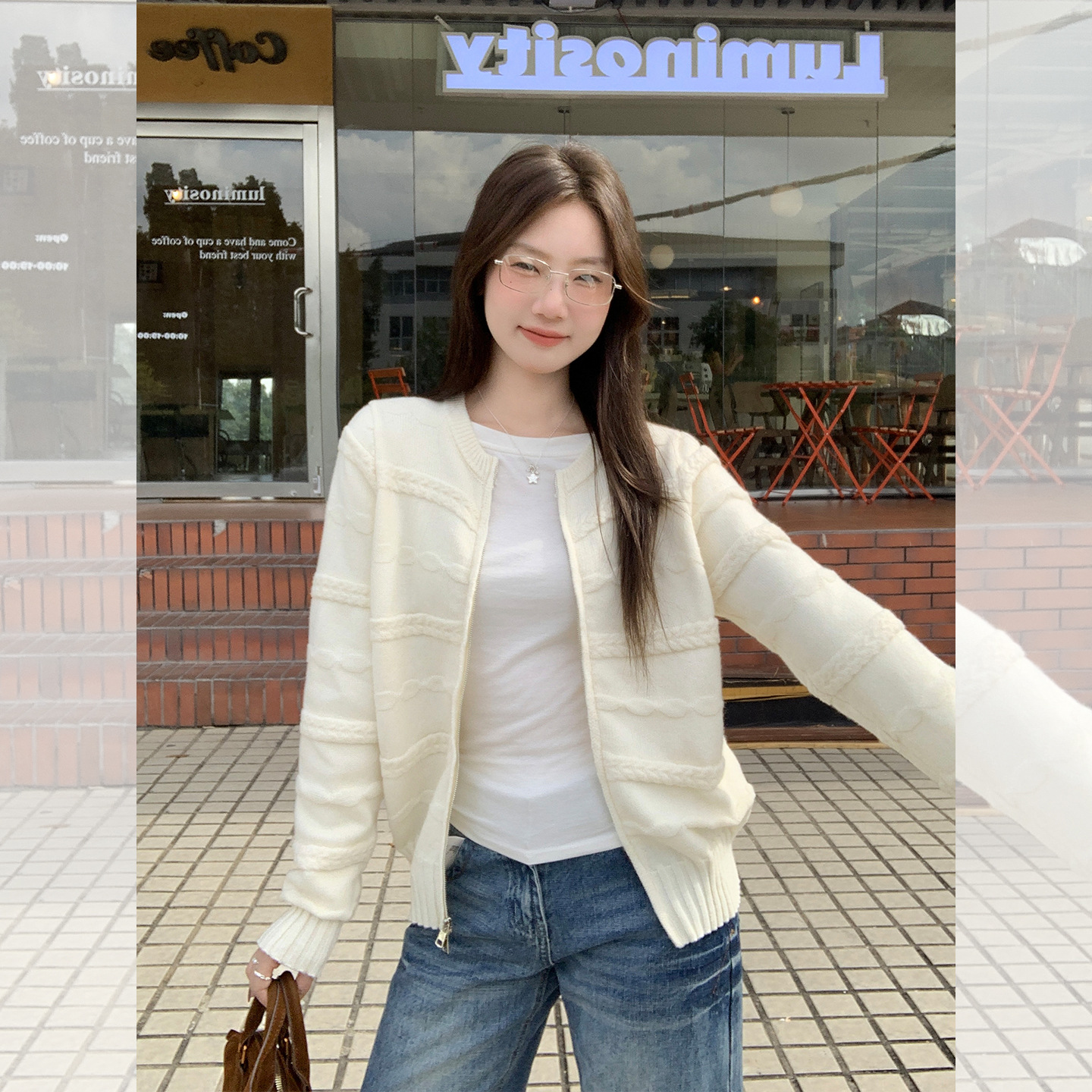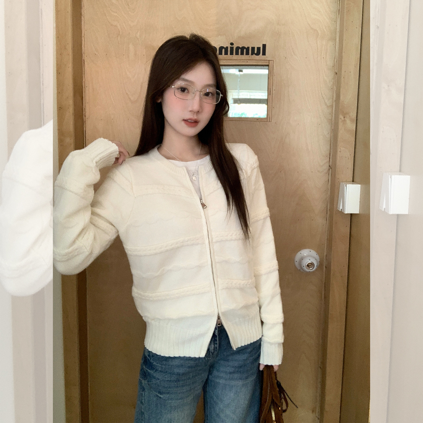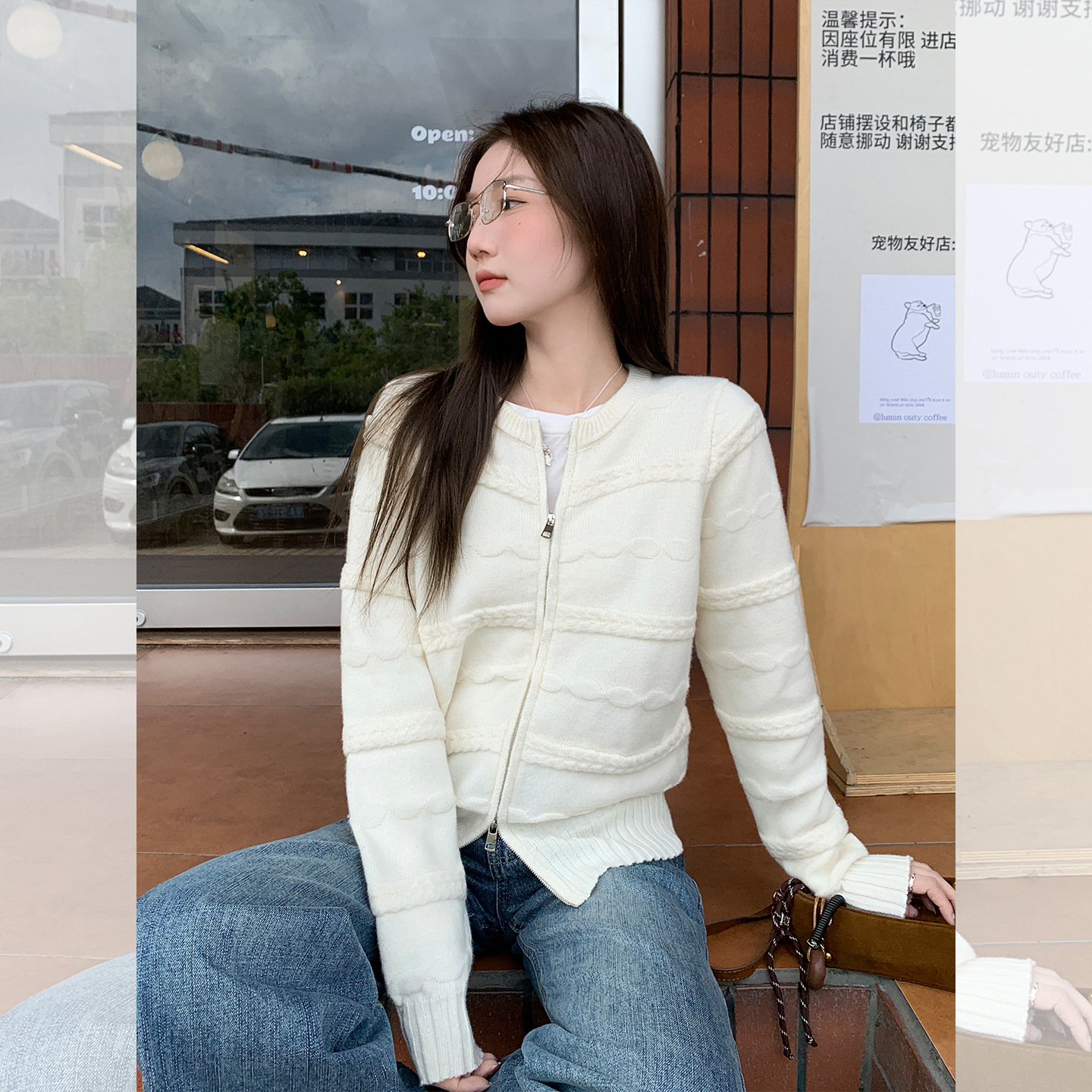 白色慵懒感拉链开衫外套女2025秋冬季穿搭上衣宽松设计感针织衫
