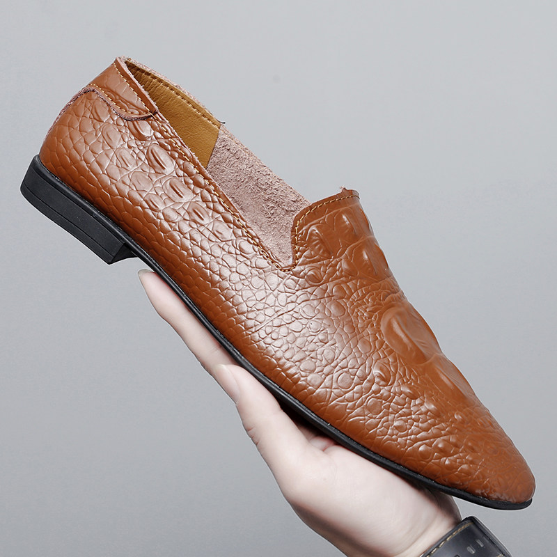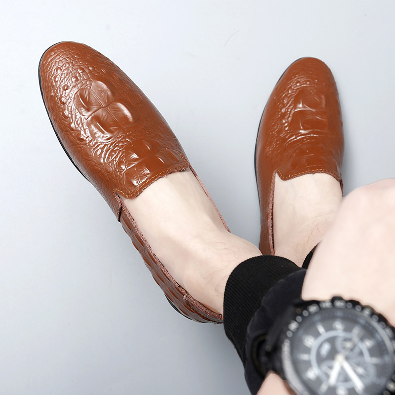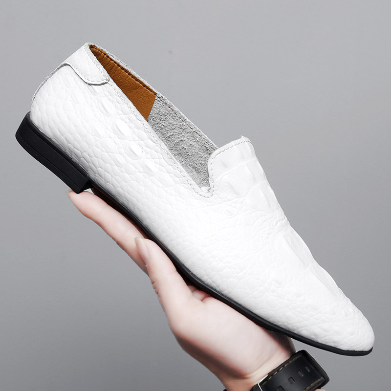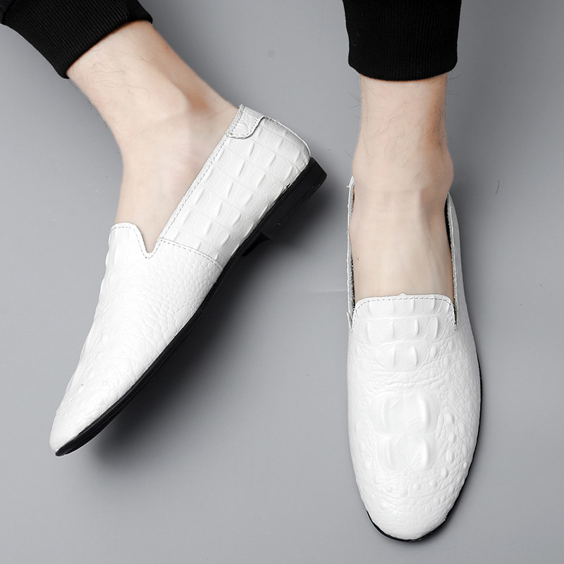 尖头休闲男皮鞋2025新款轻便软低真皮小码时尚潮流一脚蹬豆豆鞋男