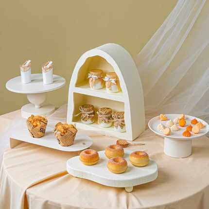 欧式奶白色甜品台摆件木质展示架