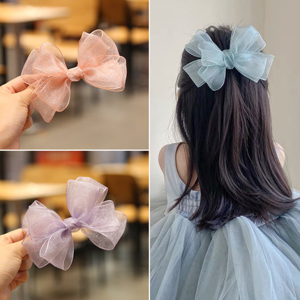 网纱大蝴蝶结双层韩版发夹儿童发饰小女孩公主头花女童后脑勺发卡