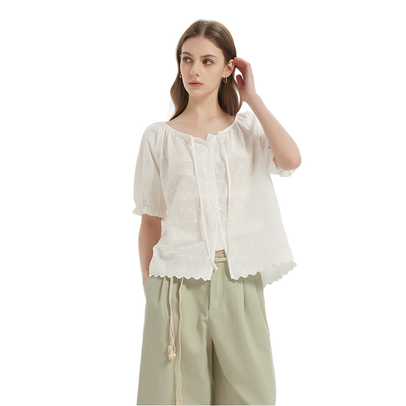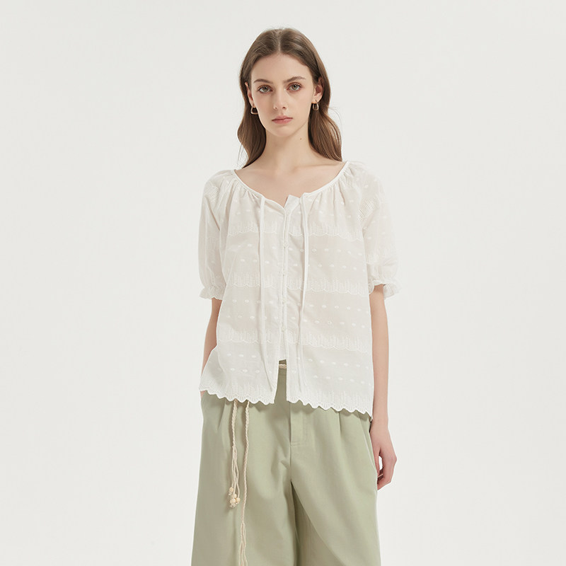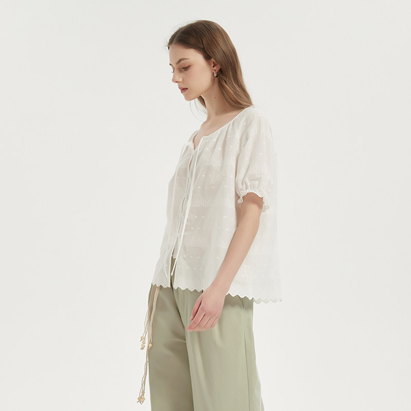 法式刺绣短袖纯棉亲肤透气衬衫女