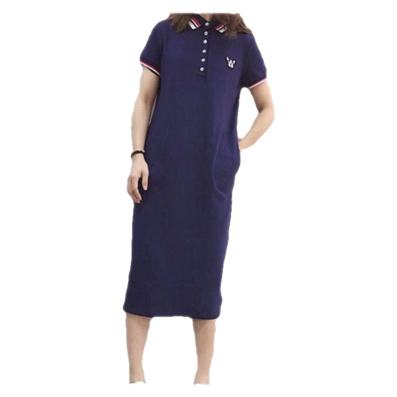 外贸原单 新款polo领通勤显瘦连衣裙保罗纯棉宽松中长款过膝裙子