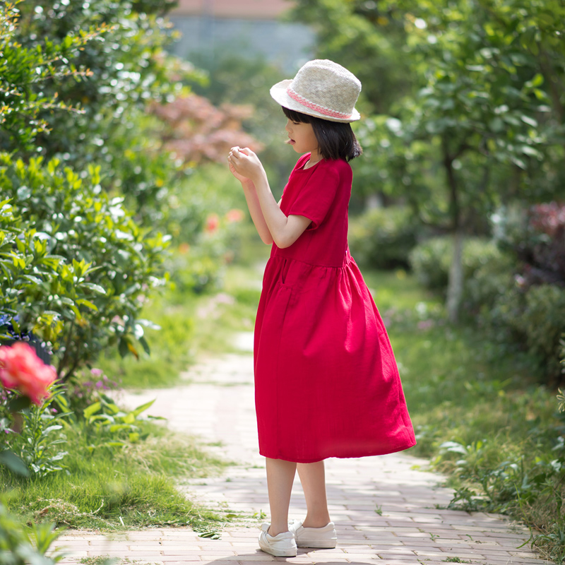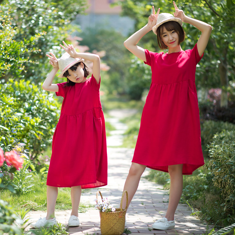 小乐往原创亲子装第6课 夏海边度假拍照红色母女旅游穿搭连衣裙